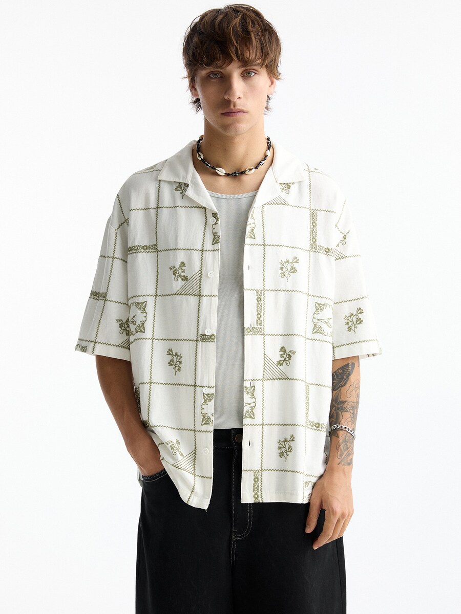 Клетчатая рубашка Pull&Bear Comfort fit Button Up Shirt, белый 3 799₽