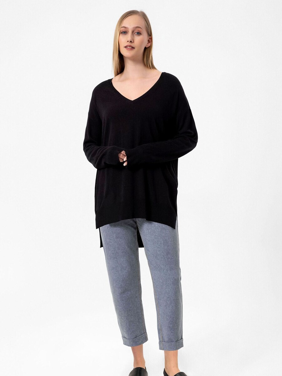 Тонкий вязаный свитер Anou Anou Sweater, черный
