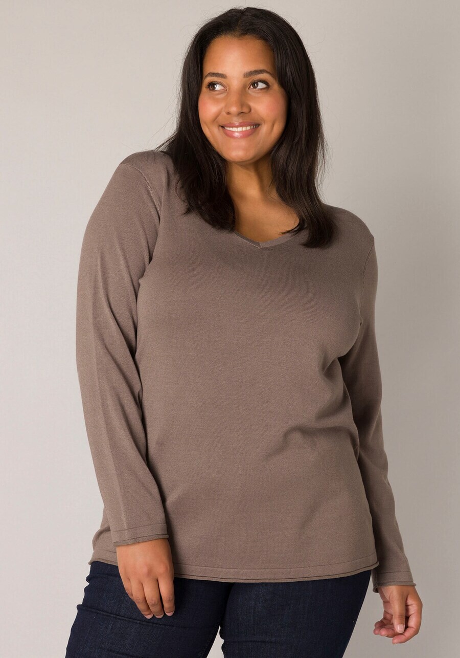 Тонкий вязаный свитер BASE LEVEL CURVY Sweater, серо-коричневый