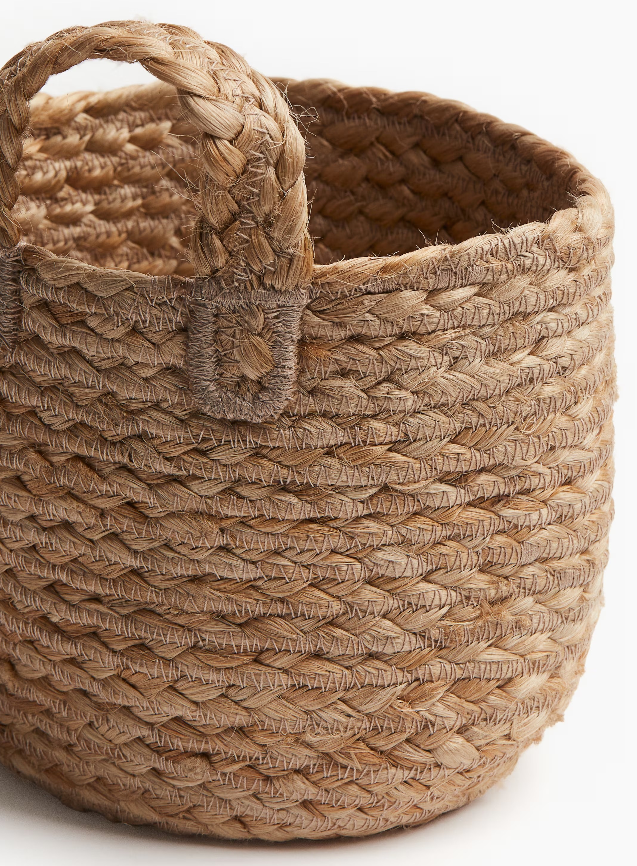 Маленькая корзинка выполнена из вязаного джута и подойдет для хранения полезных мелочей. Она имеет петлю для подвешивания на стене и отделана зигзагообразной строчкой для придания декоративного вида.