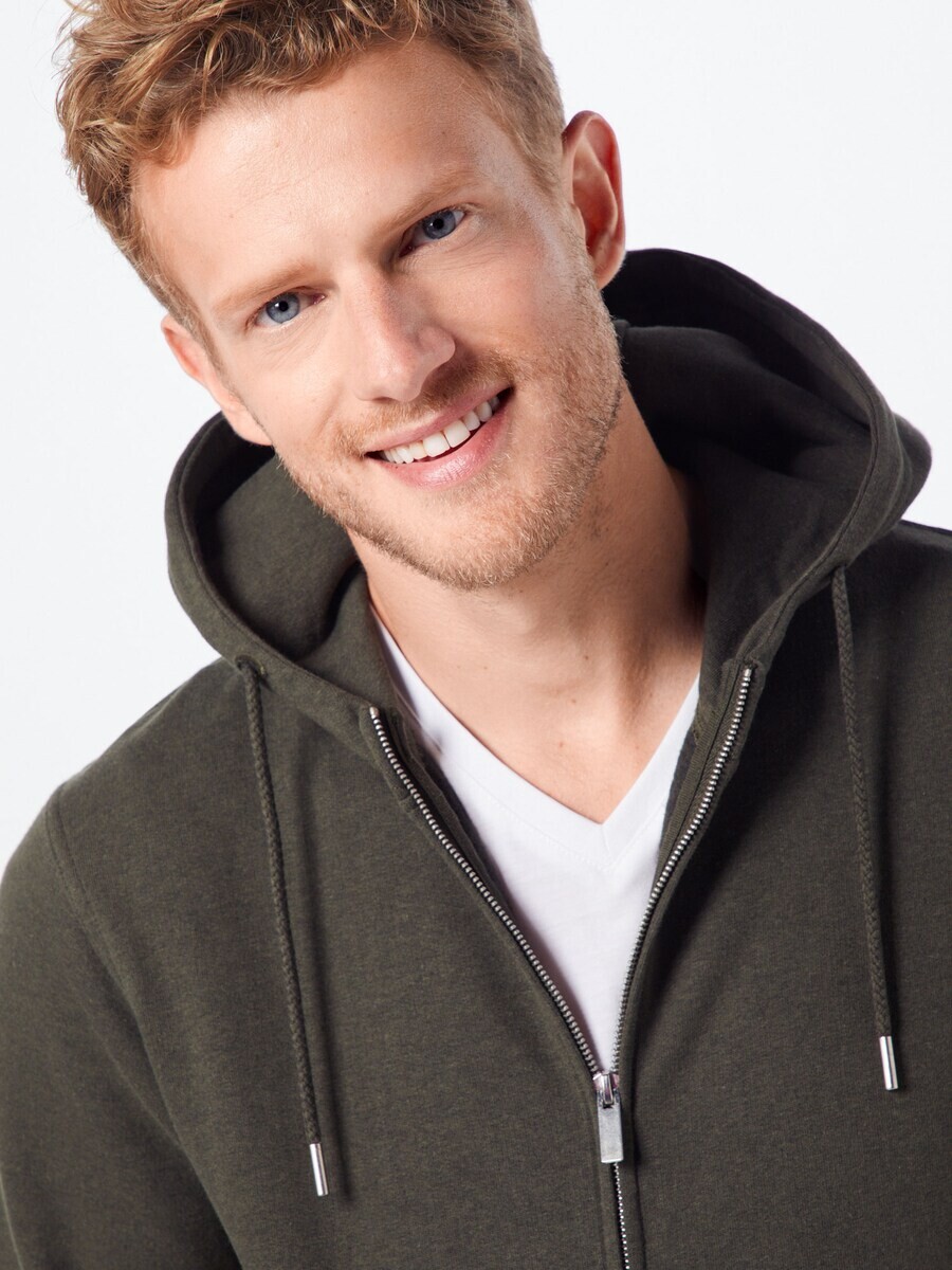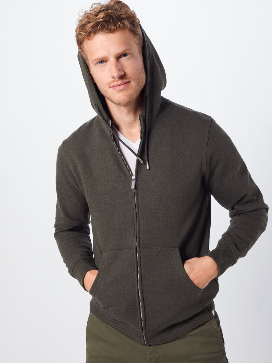 Толстовка с капюшоном на молнии !Solid Zip-Up Hoodie Morgan, темно-зеленый