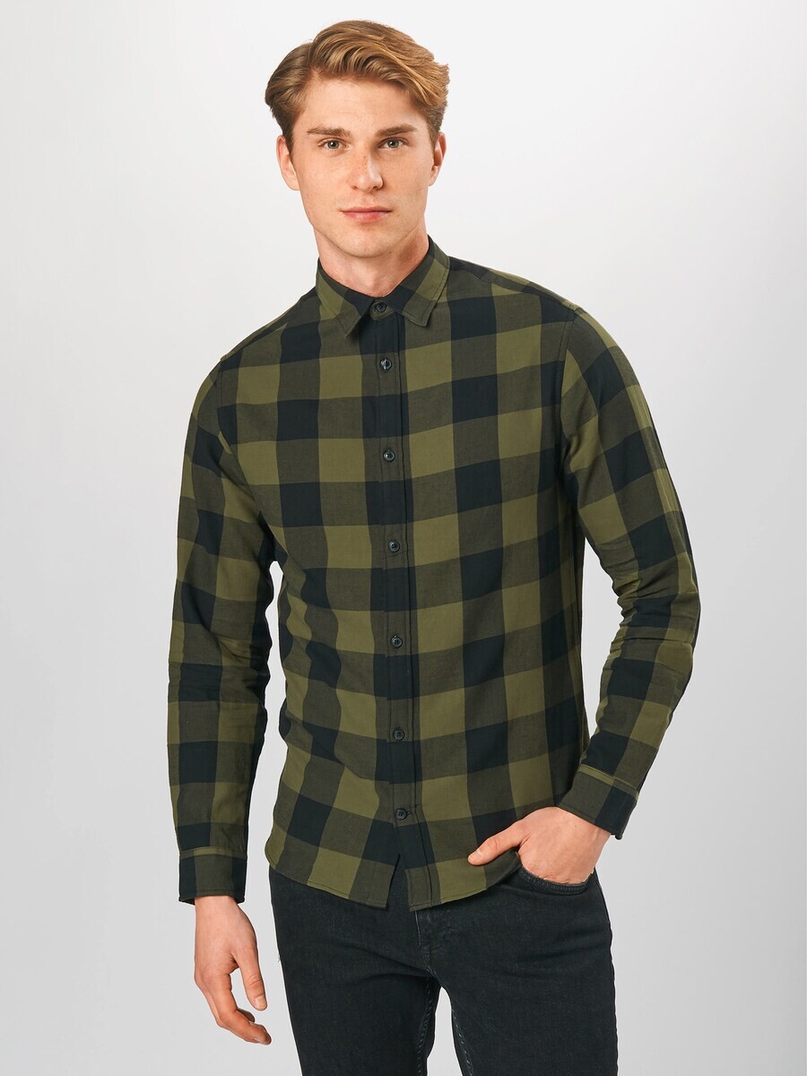 Клетчатая рубашка JACK & JONES Regular fit Button Up Shirt Gingham, оливковый