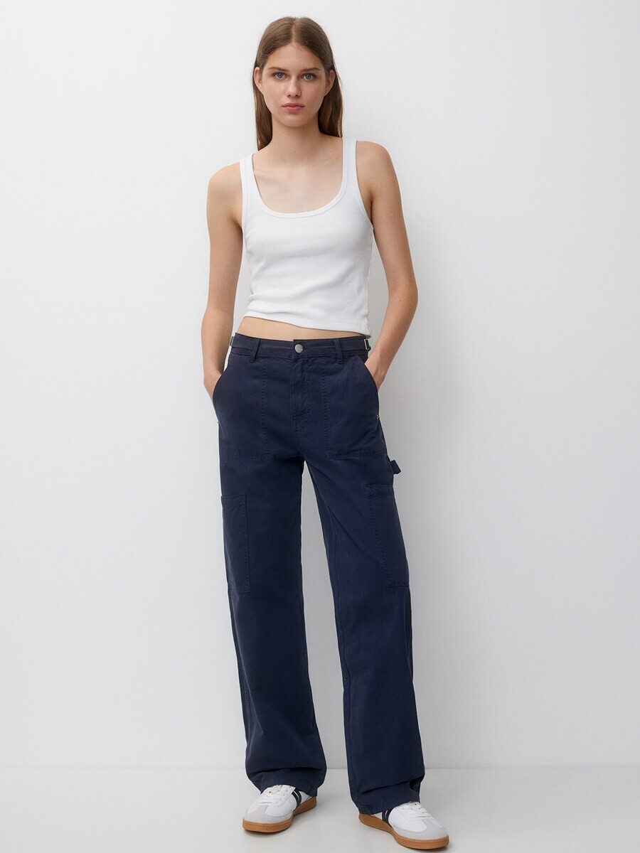 Тканевые брюки Pull&Bear Loose fit Pants, темно-синий