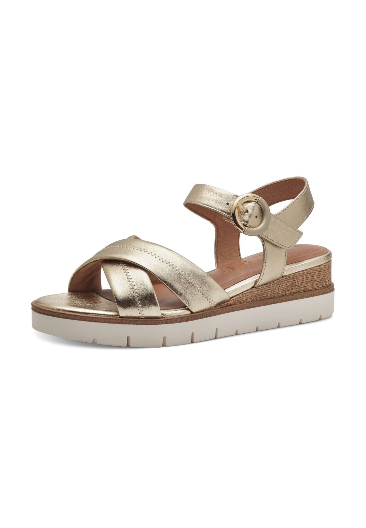 Эти босоножки на танкетке от Tamaris заставляют женские сердца биться чаще. Два перекрещивающихся ремешка из мягкой кожи мягко обхватывают ногу. Застежку можно использовать индивидуально, чтобы отрегулировать обувь и обеспечить ее идеальную посадку. Что касается комфорта при ношении, модель отличается мягкой стелькой, обеспечивающей высокий уровень комфорта во время любого вида досуга.