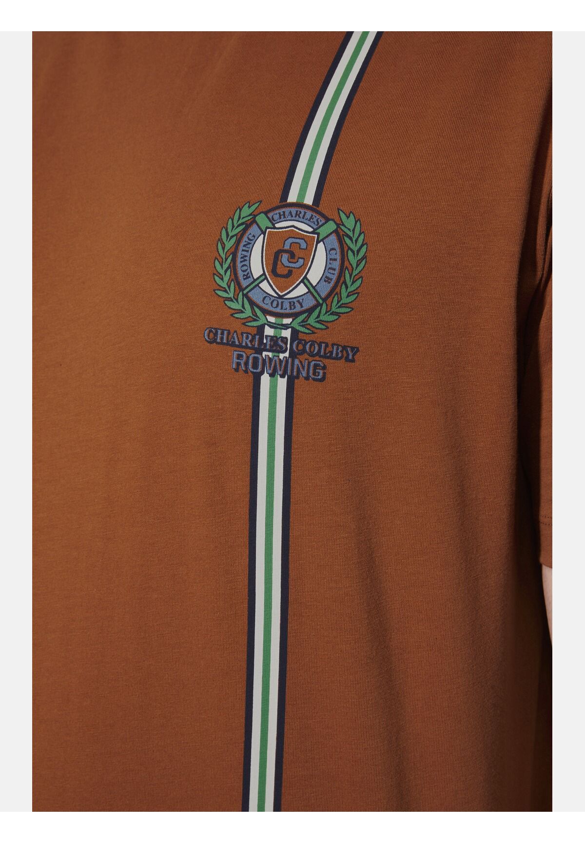 Charles Colby предлагает шикарную британскую мужскую одежду больших размеров. Будьте членом клуба: футболка EARL SULLIVAN с декоративным принтом четко подчеркнет ваш спортивный стиль. Узкие полосы проходят вертикально по левой стороне, мало чем отличаясь от ленты. На уровне груди находится печатный значок, увенчанный стилизованным лавром, свидетельствующий о членстве в Королевском гребном клубе. Само собой разумеется, удобный крой с боковыми разрезами. 100% хлопок. Машинная стирка.