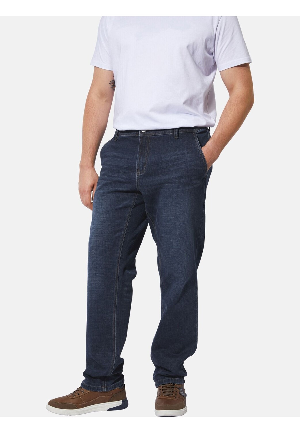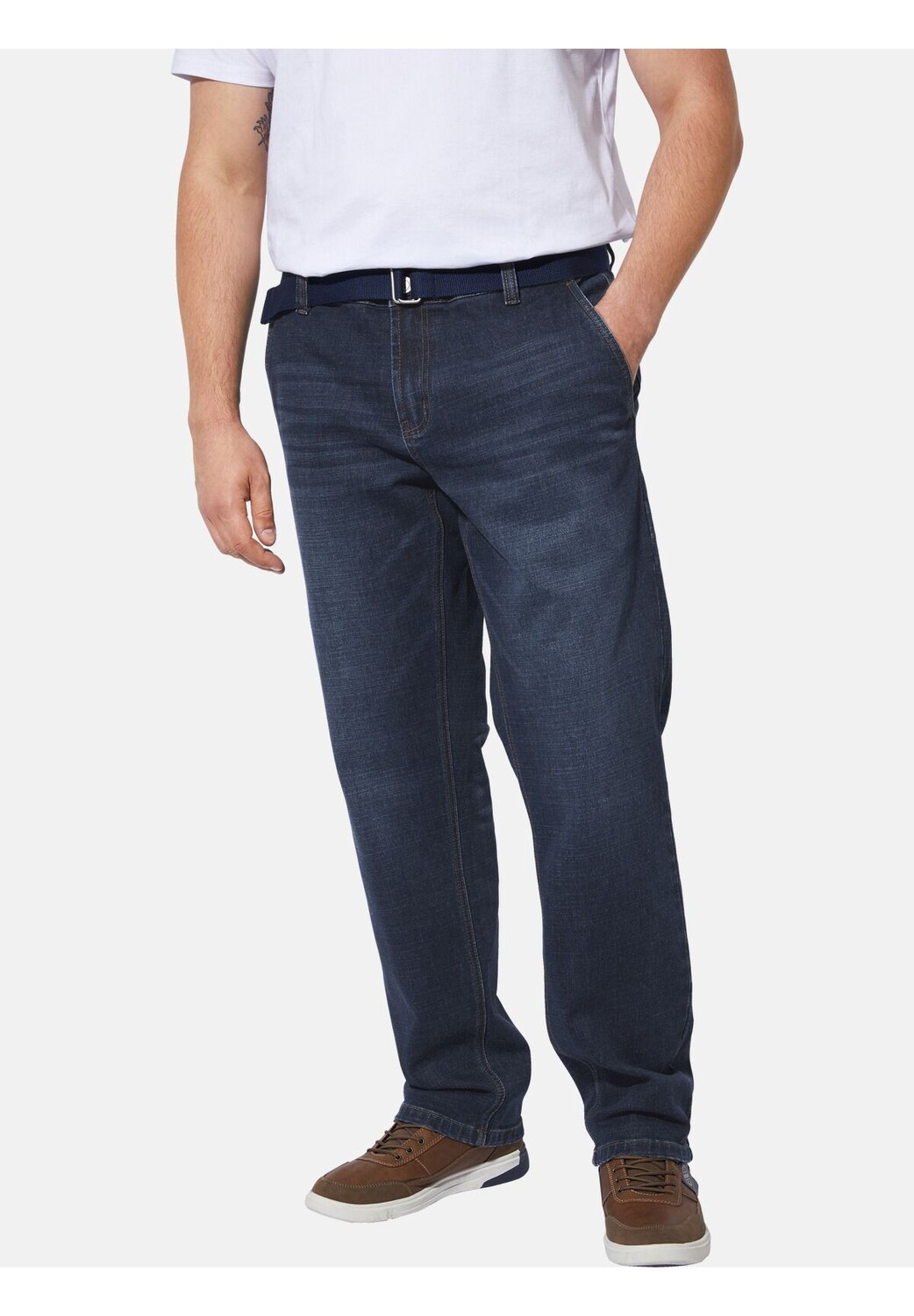Charles Colby предлагает шикарную британскую мужскую одежду больших размеров. Джинсы BARON GEORGERTON от Charles Colby — воплощение стильной непринужденности для повседневной жизни. В сочетании с рубашкой для повседневного использования или для уютного отдыха эти джинсы станут настоящим украшением. Брюки оснащены практичными боковыми карманами и прорезными карманами сзади. Легкий моющий эффект обеспечивает непринужденный вид. В качестве специального дополнения имеется ремень для чемодана с настоящей металлической застежкой, которая дополняет общий вид. Джинсы BARON GEORGERTON – незаменимый элемент уверенного и непринужденного гардероба. Материал 61% хлопок, 37% полиэстер, 2% эластан. Машинная стирка. КОЛЛЕКЦИЯ +FIT: Комфортный стиль из нашей коллекции +Fit. Благодаря нашему специальному крою с заниженным поясом пояс сидит ниже спереди и, таким образом, обеспечивает достаточно места и комфорта для живота.