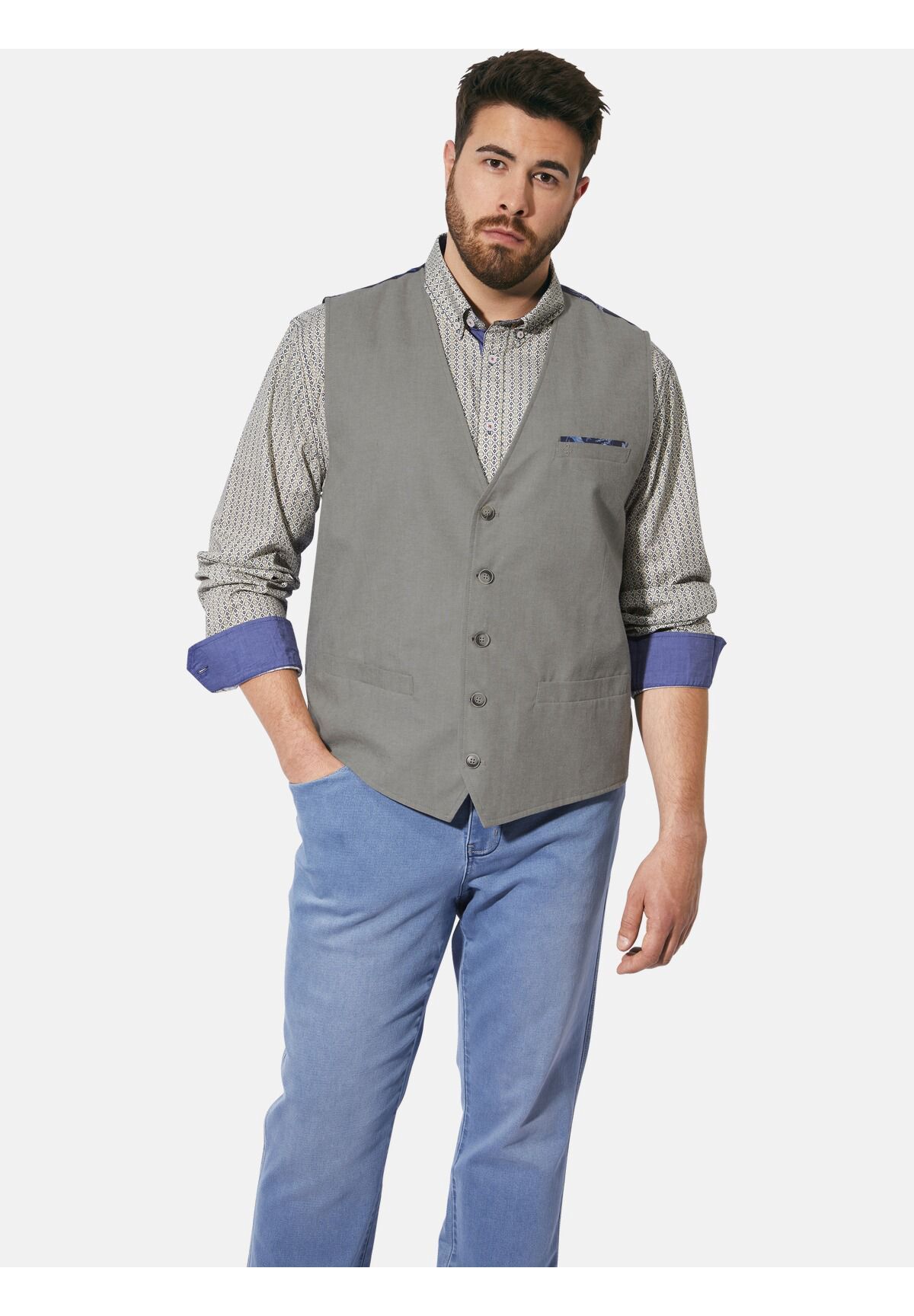 Общие инструкции по уходу: стандартная стирка при 40 °C в деликатном режиме. Инструкции по уходу за тканями: щадящий режим при 40 °C, не отбеливать, не сушить в стиральной машине, не гладить, не подвергать химической чистке Материал одежды: Всего: 65% полиэстер, 35% хлопок Описание товара: Charles Colby предлагает британский шик мужской одежды больших размеров. Жилет DUKE BARNABOR от Charles Colby – идеальный выбор для самых изысканных моментов жизни. Этот элегантный жилет впечатляет своей передней частью с пятью пуговицами и предлагает место для необходимых мелочей с двумя прорезными карманами. Внутренняя подкладка представляет собой привлекательный узор, который повторяется на плечах и на платке тщательно вышитого нагрудного кармана. С жилетом DUKE BARNABOR вы будете выглядеть уверенно и элегантно на любом торжественном мероприятии. Комфортная посадка. Внешний материал 65% полиэстер, 35% хлопок; Подкладка 100% полиэстер. Особенности: с оттенком нагрудного платка бежевый Стирать с похожими цветами Стирать наизнанку Жилет DUKE BARNABOR с ложным нагрудным платком Комфортная посадка - прямой и удобный крой Прочная смесь хлопка Два прорезных кармана Внутренняя подкладка с элегантным рисунком Застежка: Застежка на пуговицы Применение: Вышивка Стиль: Традиционный Покрой: Прямой Вырез: V-образный вырез Длина рукава: Без рукавов Положение застежки: Спереди