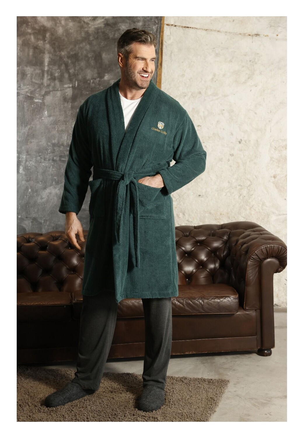 Charles Colby предлагает шикарную британскую мужскую одежду больших размеров. Максимальный комфорт гарантирован. LORD CURE Халат из приятной и мягкой хлопковой махровой ткани. Удобный крой, с завязывающимся поясом. Модель прямого кроя с двумя накладными карманами. Изготовлен из 100% хлопка. Машинная стирка.