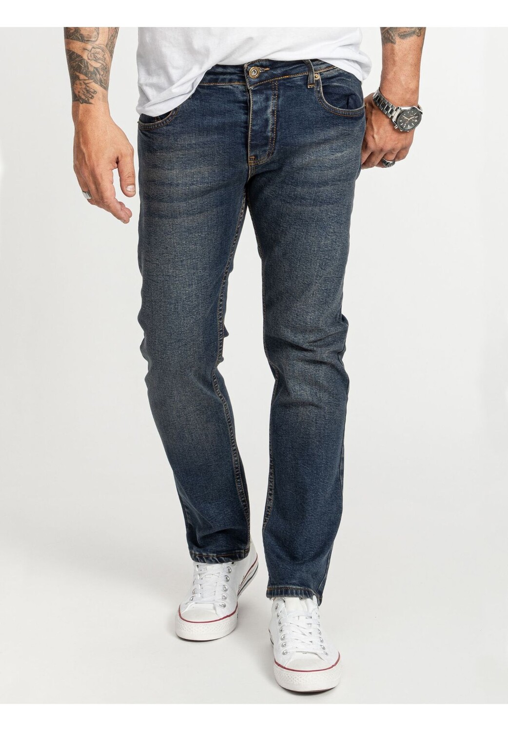 Инструкции по уходу за текстильными изделиями: Обычная стирка при 30 °C Материал одежды: Всего: 98% хлопок, 2% эластан Описание товара: Мужские джинсы Rock Creek RC-2400: ваш новый любимый образ Максимальный комфорт благодаря эластичному дениму Мужские джинсы Rock Creek RC-2400 темно-синего цвета — идеальный компаньон на каждый день. Высококачественный эластичный деним обеспечивает оптимальную посадку и максимальную свободу движений, независимо от того, находитесь ли вы в офисе или проводите день в городе. В этих джинсах вам будет комфортно на протяжении всего дня. Вневременной стиль в дизайне с отделкой под камень Темно-синий дизайн под камень придает RC-2400 вневременной, но современный вид. Его легко сочетать с повседневной футболкой, элегантной рубашкой или спортивной курткой. В этих джинсах вы всегда модны и имеете стильный внешний вид. Практичный и прочный: пять карманов и застежка на пуговицы. Классический вариант с пятью карманами. В Rock Creek RC-2400 достаточно места для всей вашей важной посуды. Прочная застежка на пуговицы обеспечивает надежную фиксацию и подчеркивает высокое качество и долговечность этих джинсов. Эти джинсы — выгодная инвестиция в комфорт и стиль. Особенности: Классические мужские джинсы с 5 карманами и спортивного кроя Джинсы с эластичной вставкой для дополнительного комфорта и лучшей формы Крой: обычный крой / джинсы прямого кроя Stone Washed: стирка с более крупными пемзами создает слегка поношенный вид Мужские брюки со потайной ширинкой и широкими петлями для ремня Застежка: Застежка на пуговицы Стиль: Повседневный Посадка: Прямой Передние, задние и внутренние карманы: Пять карманов Длина брюк: Длинные брюки