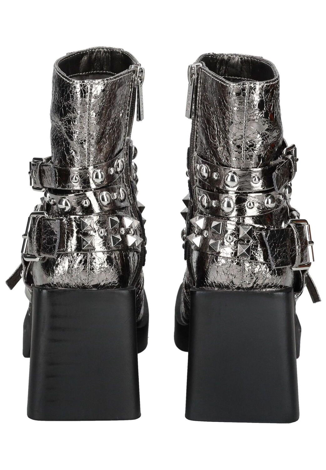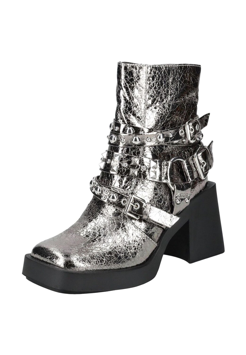 Материал верха: Искусственная кожа Материал стельки: Искусственная кожа Материал подошвы: Резина Подкладка: Искусственная кожа Описание товара: Эти модные ботильоны впечатляют модным дизайном и высоким качеством изготовления из гладкой кожи. Выразительный блочный каблук обеспечивает устойчивую стойку и удобство в ношении. Элегантный квадратный носок придает обуви элегантный вид, а боковая молния позволяет легко надевать и снимать обувь. Заклепки и металлические люверсы, завершающие дизайн, придают дизайну дополнительный стиль. Особенности: Застежка: молния Форма каблука: блочный Высота каблука: 8 см Целевая группа: женщины Застежка: молния Форма каблука: блочный каблук Носок обуви: Квадратный нос Артикул: 8720857532777