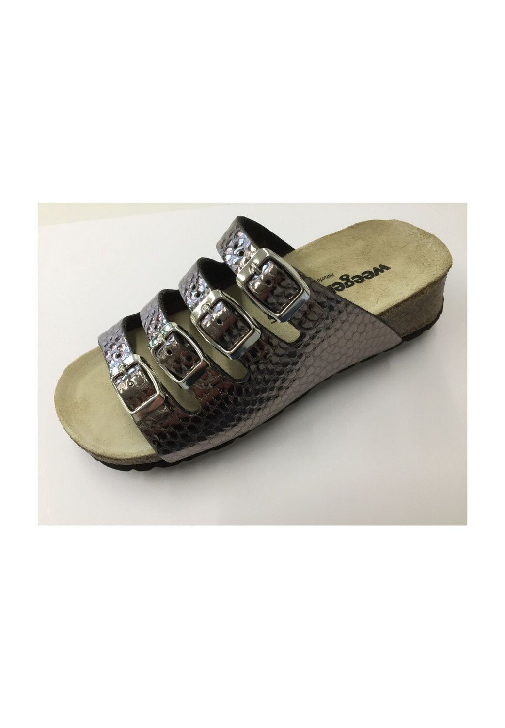 Мюли Weeger на танкетке (около 20 мм), голенище из легкой в ​​уходе искусственной кожи, эффект металла, высококачественная стелька из пробкового латекса