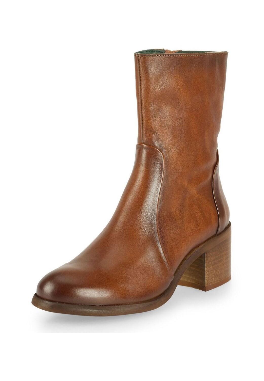 MIRA D948: Простые, но элегантные ботинки на низком каблуке из коньячной кожи с внутренней молнией для удобства использования. Эти элегантные ботинки идеально дополнят любой наряд.