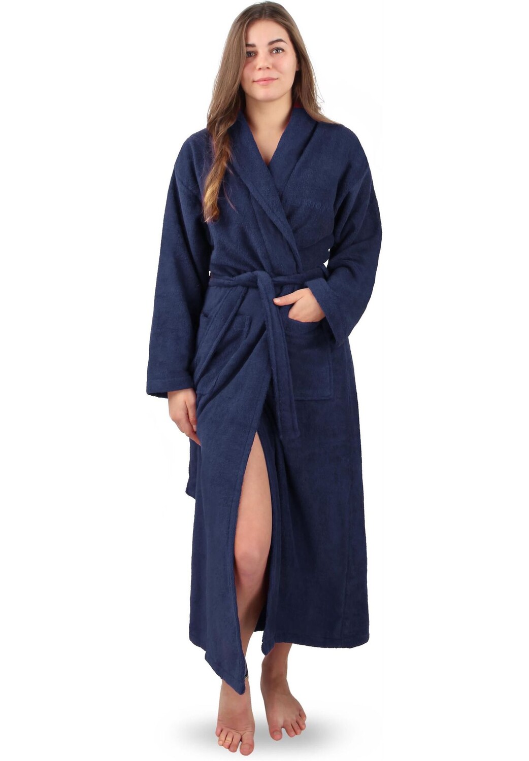 Мягкий хлопковый материал плотностью 380 г/м², который сушит вас после душа и сохраняет тепло до щиколоток. Удлиненный халат идеально подходит для тех, кто не хочет замерзать зимой и одновременно хочет посетить термальные ванны. Халат также идеально подходит для высоких людей. Дышащий хлопковый материал обеспечивает быстрое впитывание влаги и в то же время быстрое высыхание, оставляя тело сухим. Изысканный дизайн и функциональность: длинный халат имеет неподвластный времени крой, оснащен вешалкой, двумя накладными карманами и поясом. который надежно крепится к халату благодаря двум петлям и всегда обеспечивает идеальную посадку. Особенности: • Впитывающий хлопковый материал • Чрезвычайно мягкий на ощупь благодаря махровой ткани • Ремень для идеальной регулировки размера • Материал: 100% хлопок (380 г/м²) • Длина халата составляет ок. 135–148 см • Сделано в Европе. Материал: хлопок.