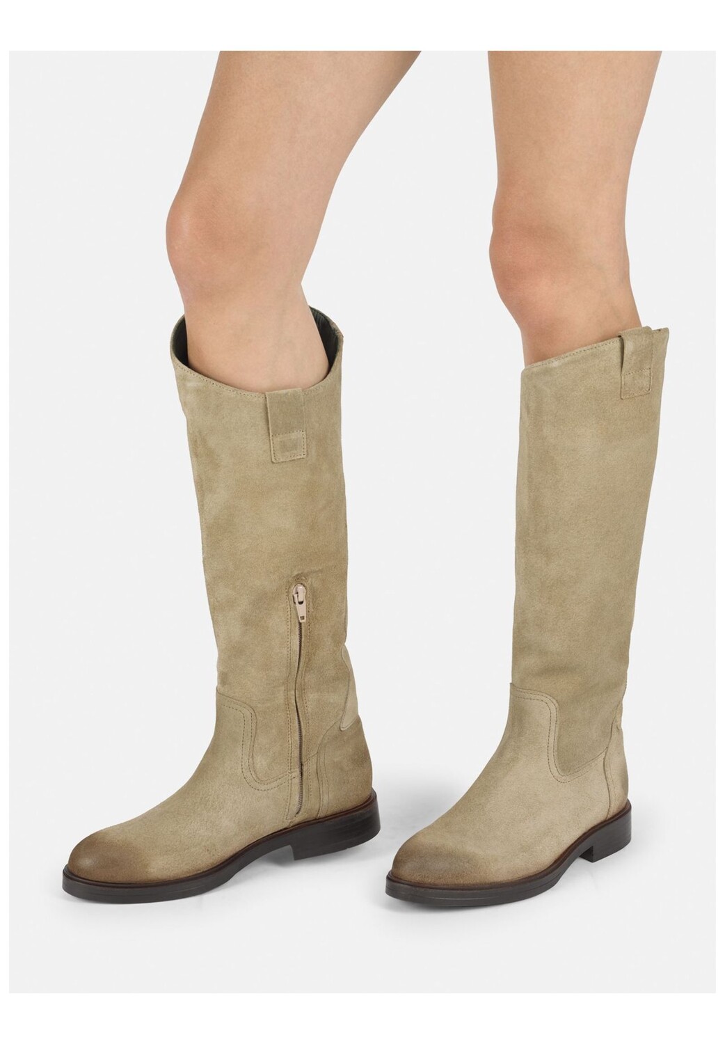 PAROS E047 Высокие замшевые ботинки на низком каблуке и внутренней молнии. Эти стильные ботинки сочетают в себе комфорт и элегантность и идеально подходят для любого случая.