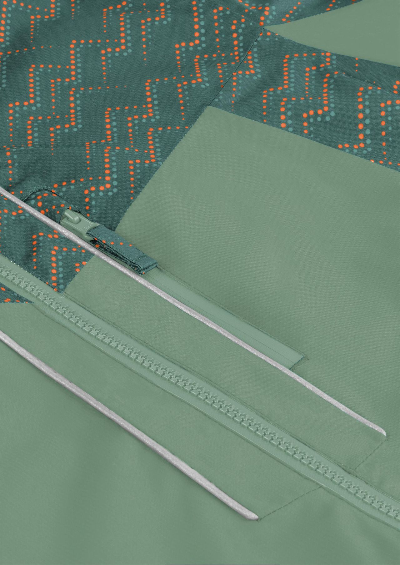 На склонах, все готово и вперед! Будь то опытные серферы по трассам или впервые катающиеся на лыжах или сноуборде – наша красочная детская лыжная куртка «Доусон» надежно защитит от снега и холода. И используемые материалы, и наполнитель весом 140 г изготовлены из 100% переработанного полиэстера. В современном процессе переработки полиэстер был получен из 100% переработанных ПЭТ-бутылок. Новый материал был получен из ПЭТ-бутылок путем измельчения, измельчения, промывки, плавления, центрифугирования и текстурирования. В зависимости от размера лыжной куртки перерабатывалось в среднем 15 ПЭТ-бутылок на одну куртку. Обработанная 2-слойная полиуретановая мембрана в сочетании со сварными швами обеспечивает водяной столб 12. 000 мм и воздухопроницаемость 5. 000 г/м² в сутки. Это означает, что лыжная куртка полностью водонепроницаема и ветронепроницаема. Однако флис на внутренней стороне обеспечивает приятное тепло без перегрева. Для дополнительной защиты от проникновения снега лыжная куртка оснащена снегозадержателем на туловище, который крепится с помощью кнопок. Куртка также имеет флисовые вставки с отверстиями для больших пальцев в проймах, благодаря чему ваши руки будут в тепле даже без перчаток. Куртка имеет четыре кармана на молнии; Для хранения ски-пасса имеются два боковых кармана: нагрудный и нарукавный. Водонепроницаемые фирменные молнии SAB обеспечивают легкое открытие передней молнии и отдельных карманов. Внутри куртки есть еще один карман, в котором можно хранить лыжные очки или подшлемник. Размер капюшона куртки можно регулировать с помощью застежки-липучки. так что шапку можно удобно носить под ней. Капюшон также можно отстегнуть от остальной части куртки с помощью пуговиц на воротнике и молнии на шее. Ограничитель шнура на бедрах куртки и проймы, которые можно регулировать с помощью застежек-липучек, обеспечивают оптимальную посадку. Это означает, что куртку можно отрегулировать по желанию в области бедер и запястий. Светоотражатели на карманах на молнии, на груди, на плечах, на капюшоне и на горной цепочке в нижней части спины — светоотражатели бренда 3MTM Scotchlite TM Reflective Material. Отражатели обеспечивают безопасность вашего ребенка, обеспечивая раннее обнаружение в сумерках. Лыжная куртка также впечатляет своим ярким, контрастным дизайном, что обеспечивает чтобы вы всегда внимательно следили за своим ребенком на склонах. Для нас особенно важна долговечность нашей продукции. Вот почему мы стараемся разрабатывать наши продукты так, чтобы вы могли использовать их как можно дольше. По этой причине наша детская лыжная куртка «Доусон» оснащена функцией «Вырасти». Эта особенность позволяет удлинить подкладку на несколько сантиметров, чтобы даже после скачка роста куртка по-прежнему сидела и ее можно было использовать еще один сезон. Чтобы удлинить подкладку, выверните рукава наизнанку и найдите два зеленых шва. Эти швы можно снять без беспокойства. не вызывая других нежелательных побочных эффектов. Состав материала: • Внешний материал: 100% полиэстер (переработанный) • Внутренний материал: 100% полиэстер (переработанный) • Подкладка: 100% полиэстер (переработанный) Мембрана: • 2-слойная полиуретановая мембрана Пропитка: • Пропитка DWR Водяной столбик: • 12 . 000 мм Воздухопроницаемость: • 5 . 000 г/м² за 24 часа Вес: • 823 г (146-152) Пол: • 