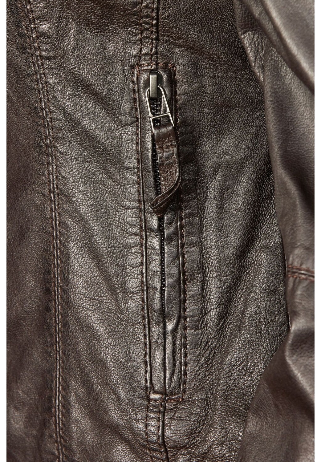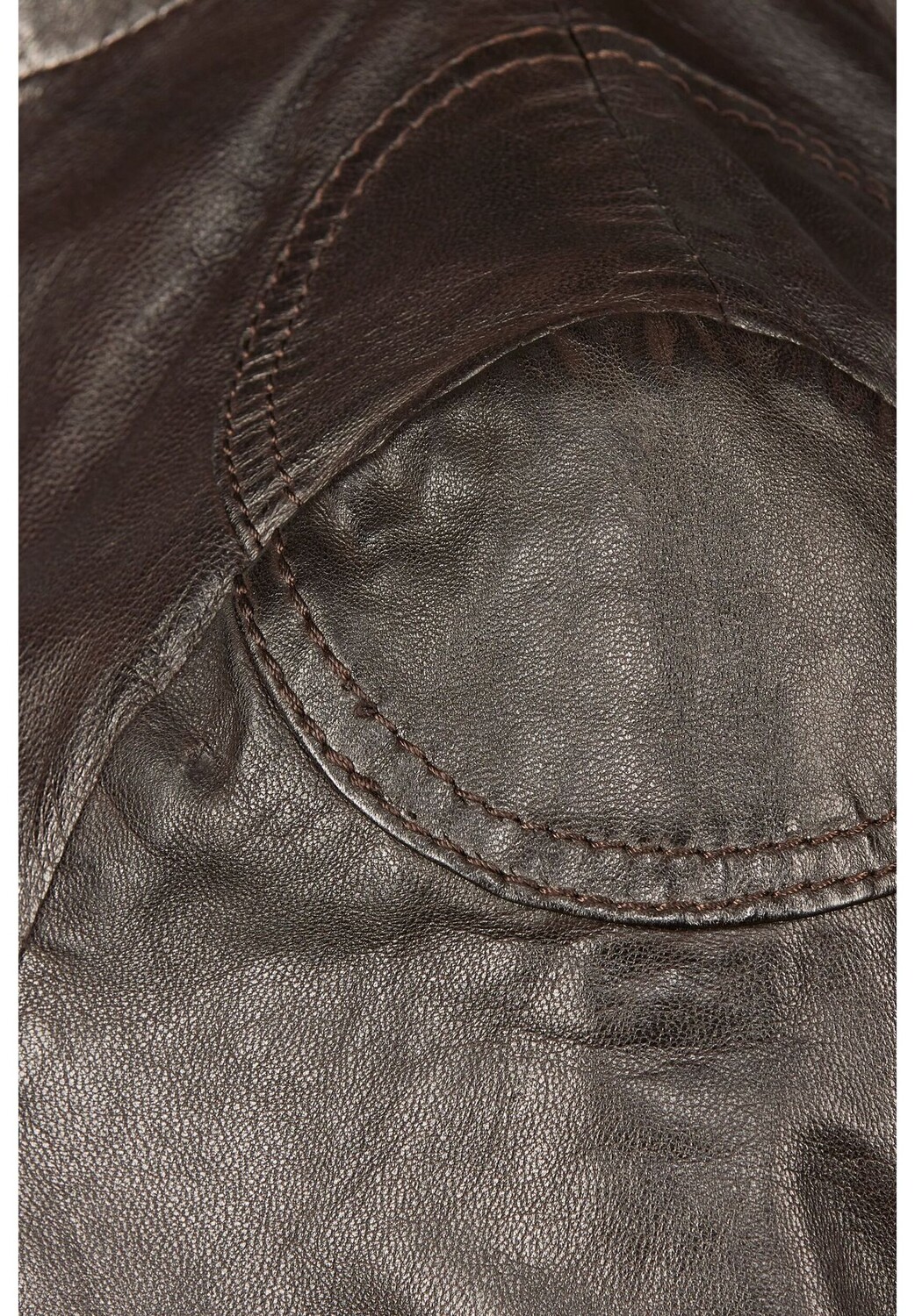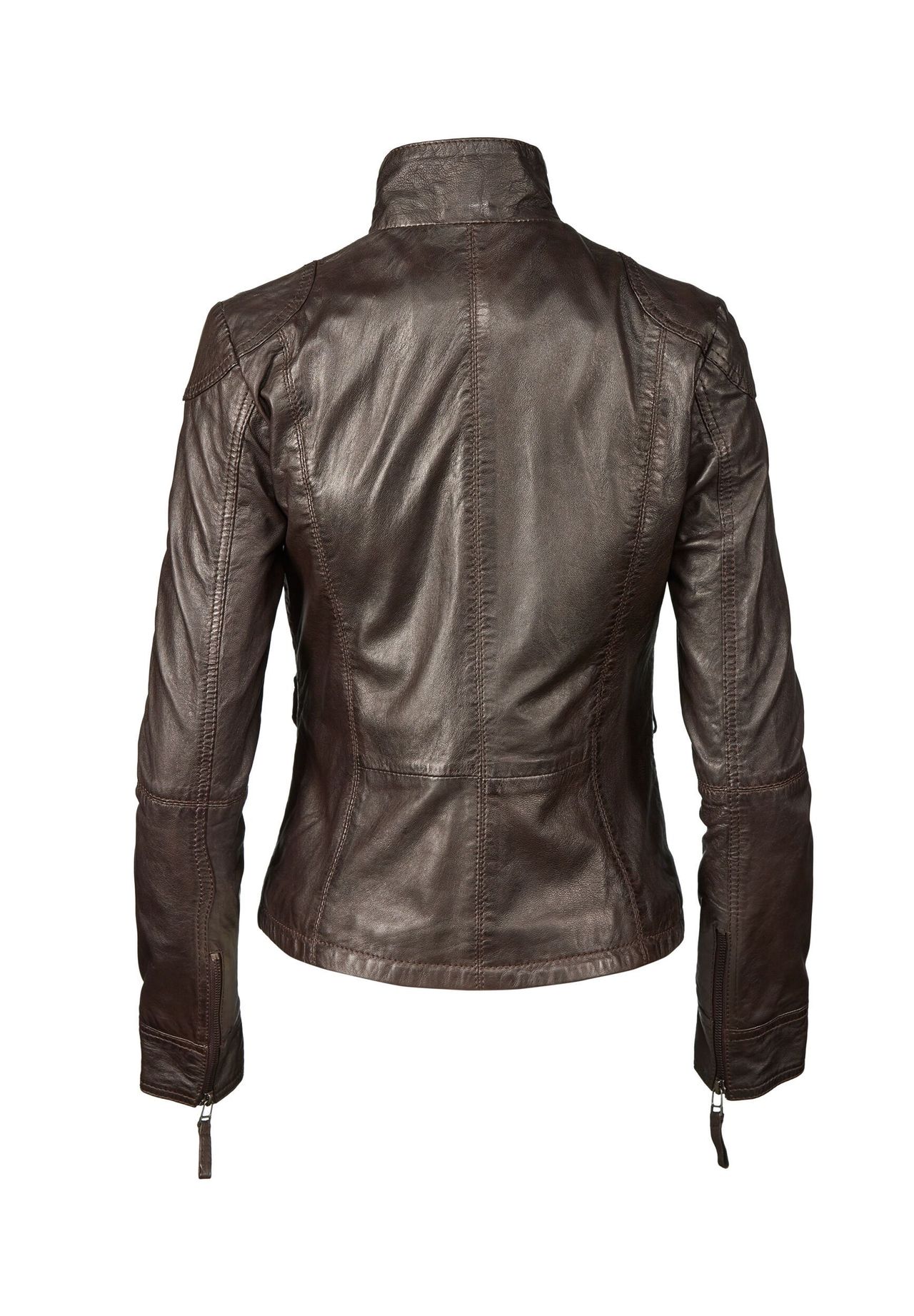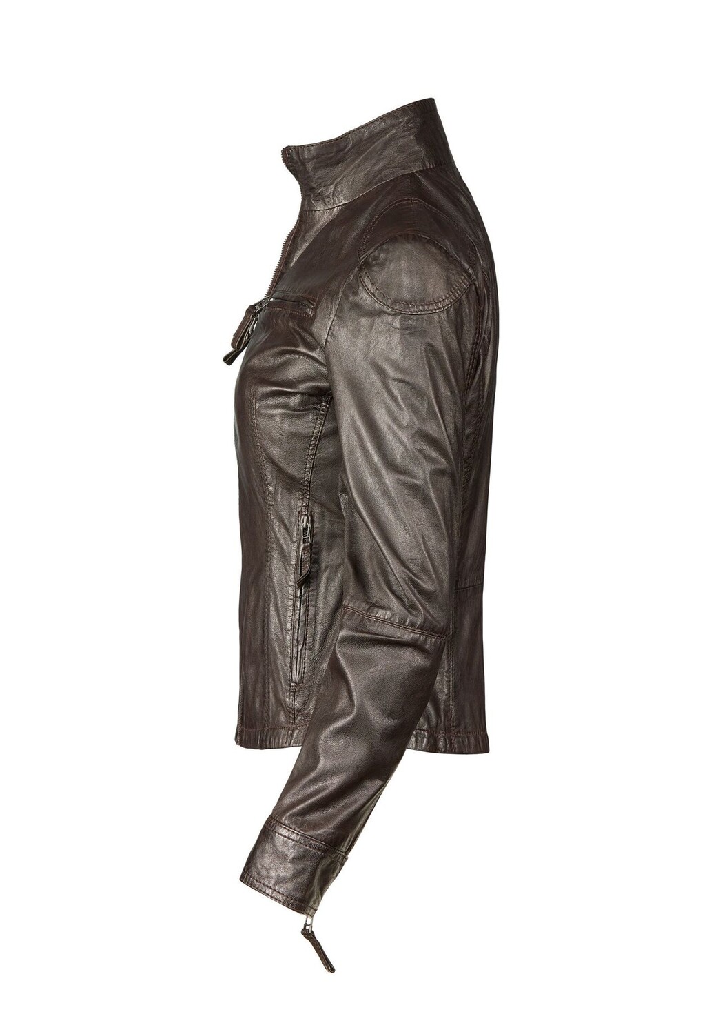 Наша вневременная женская кожаная куртка сочетает в себе классическую элегантность и современные детали. Изготовленное из высококачественной кожи, оно впечатляет декоративной строчкой и слегка приталенным кроем, подчеркивающим фигуру. Стильный воротник-стойка и молнии на рукавах расставляют модные акценты и позволяют создать индивидуальный образ. Практичные нагрудные карманы на молнии и два боковых кармана на молнии обеспечивают надежное место для хранения самых необходимых вещей. Эта куртка – настоящий must-have для следящих за модой женщин, которые ценят качество, комфорт и неподвластный времени стиль. Идеально подходит для любого случая!