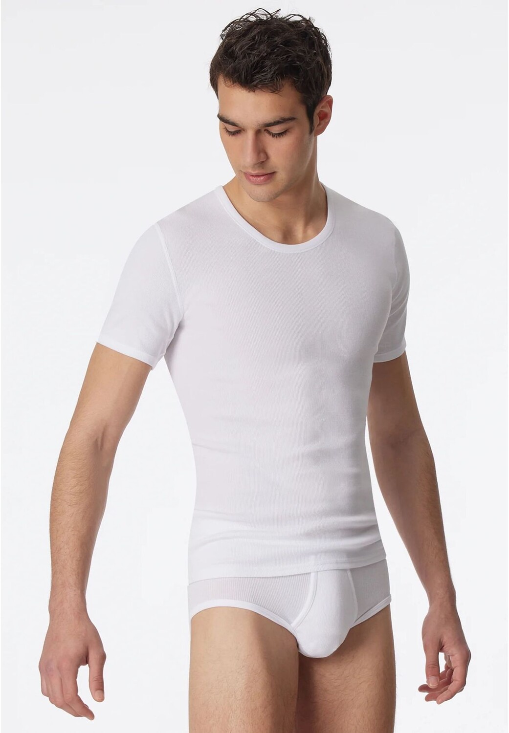 Базовые вещи в лучшем качестве: эта белая мужская майка впечатляет своим чистым внешним видом и высоким комфортом при ношении. 100% суперчесаный хлопок с двойной ребристостью придает рубашке с круглым вырезом мужественный характер, выглядит прочным и в то же время гарантирует мягкость и приятное ощущение на коже. Особенно удобная рубашка для мужчин, которые ценят износостойкие и долговечные изделия неизменно лучшего качества SCHIESSER.