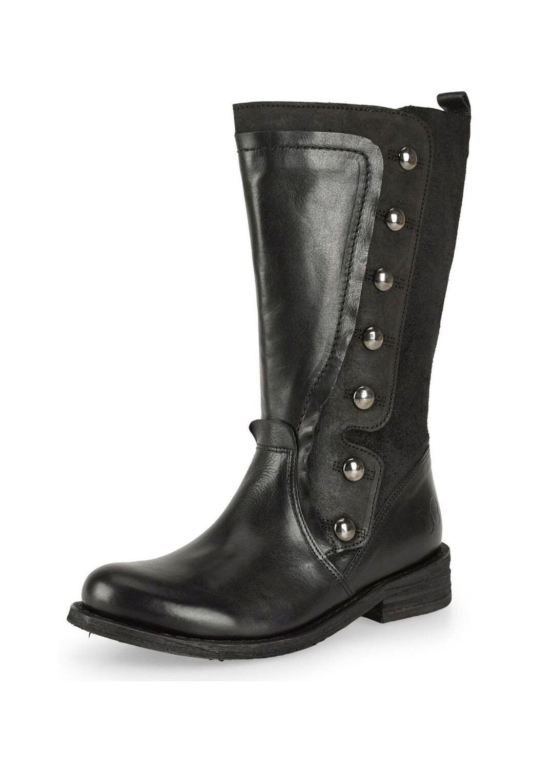 Байкерские ботинки GREDO D896 из сочетания кожи и замши черного цвета с металлическими пуговицами и внутренней молнией. Сочетание строгой элегантности и практичного дизайна, воплощающее суть духа Felmini.