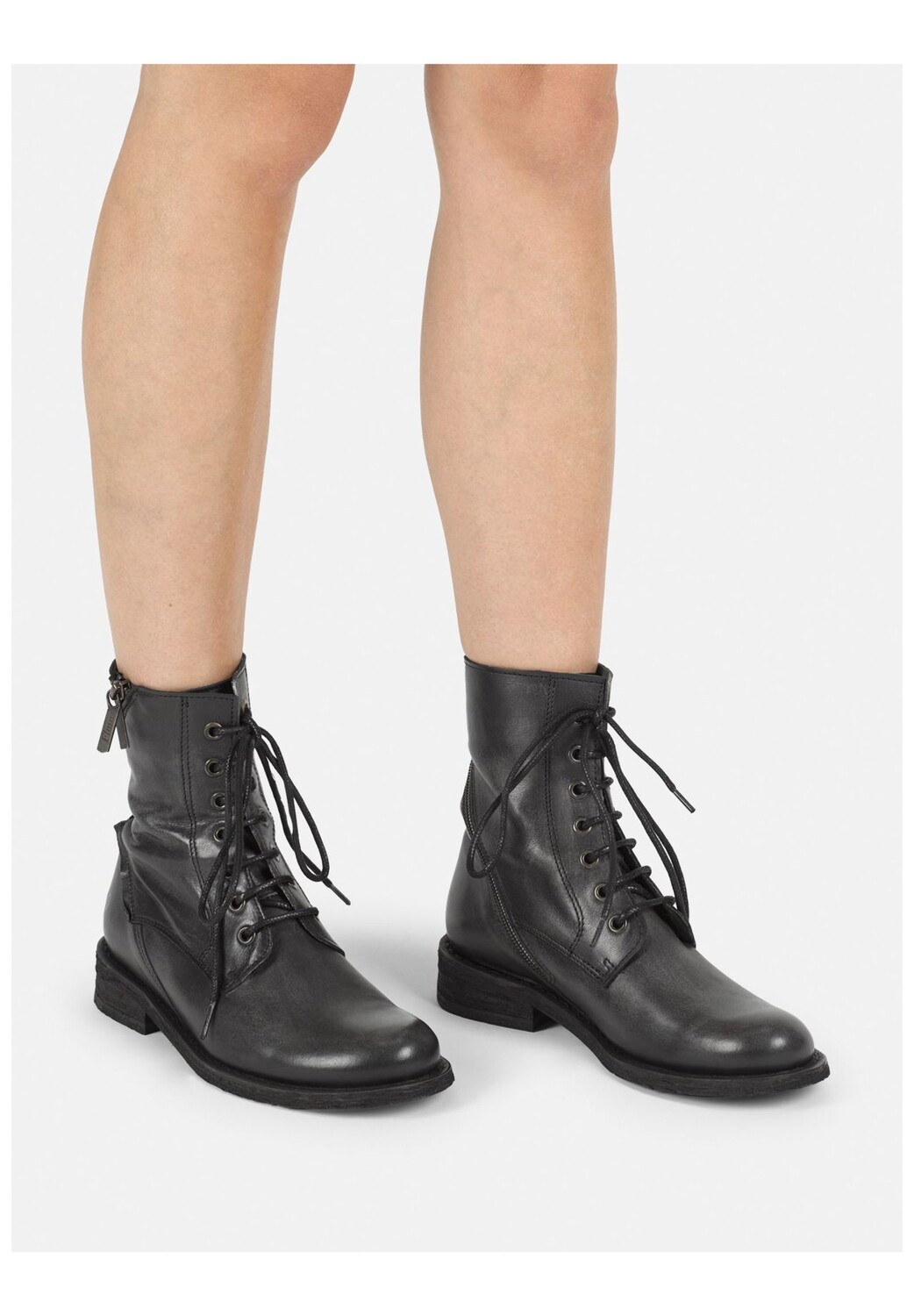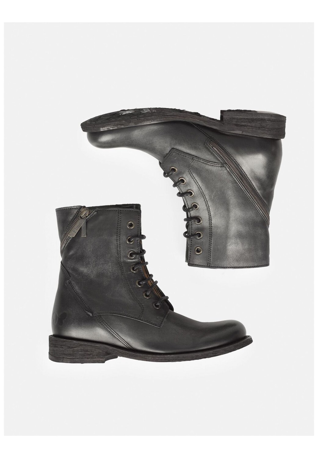 Байкерские ботинки GREDO D898 на шнуровке из черной кожи с винтажной отделкой. Эти ботинки, отражающие суть бренда Felmini, воплощают в себе вневременной стиль и строгую элегантность.