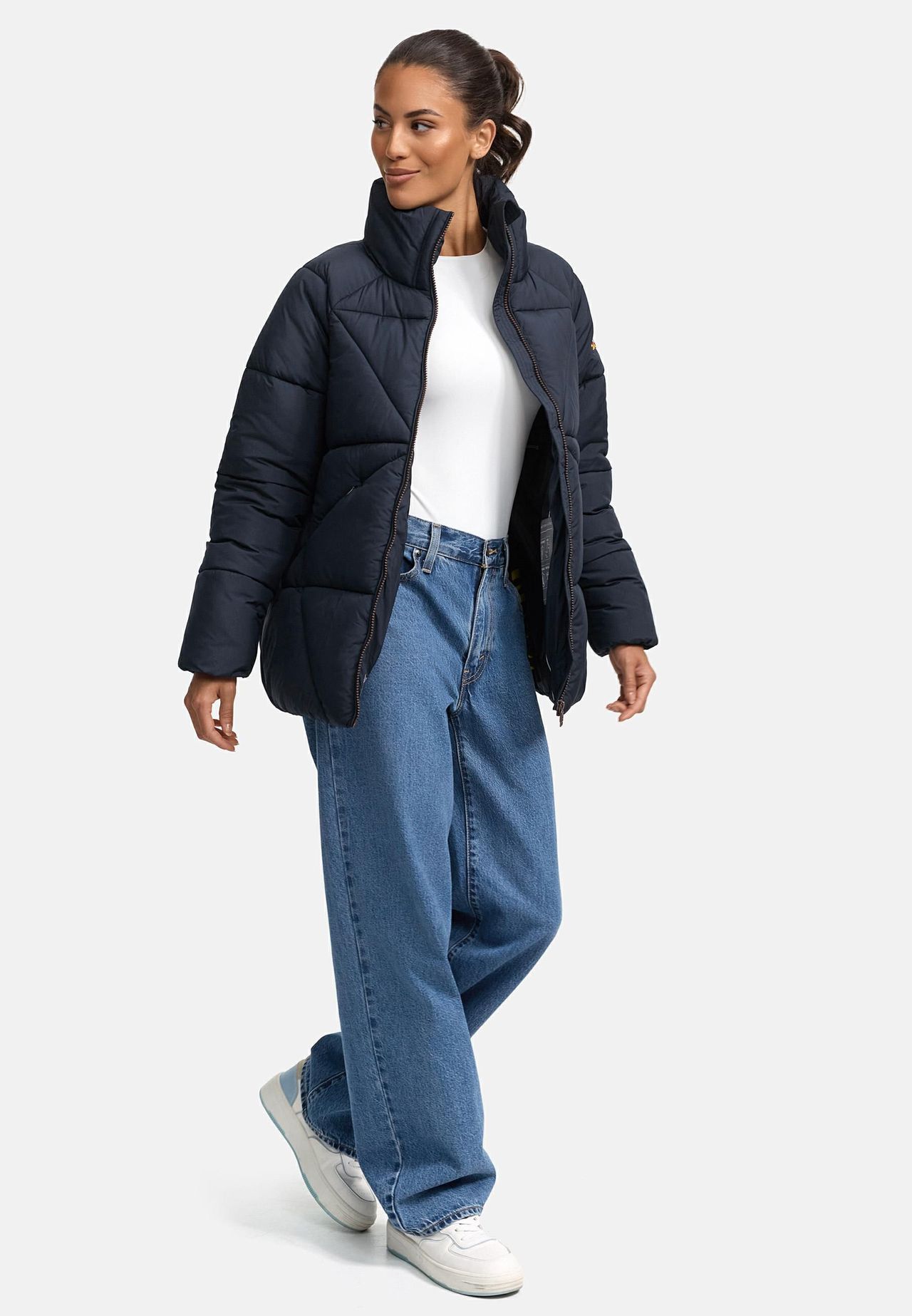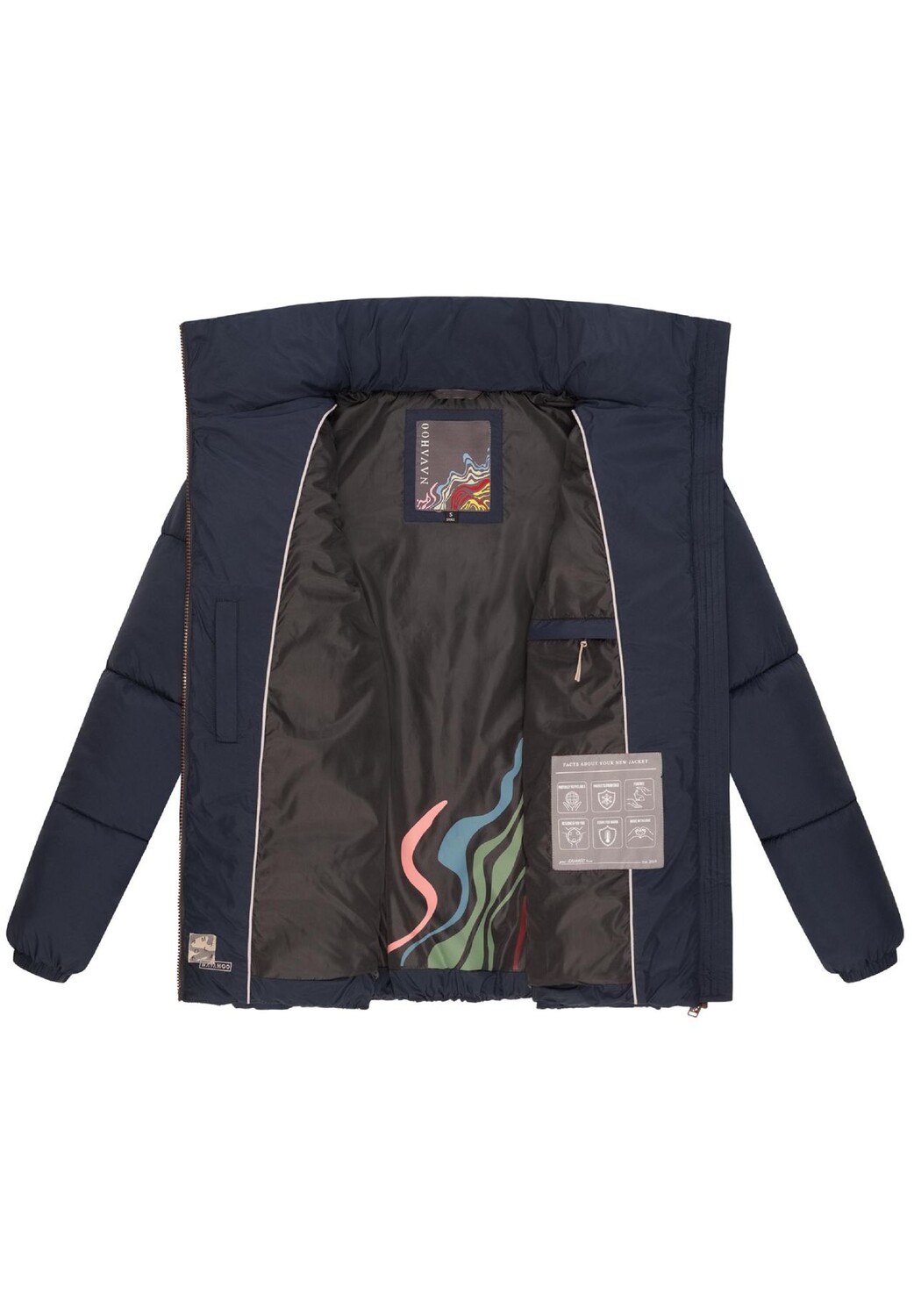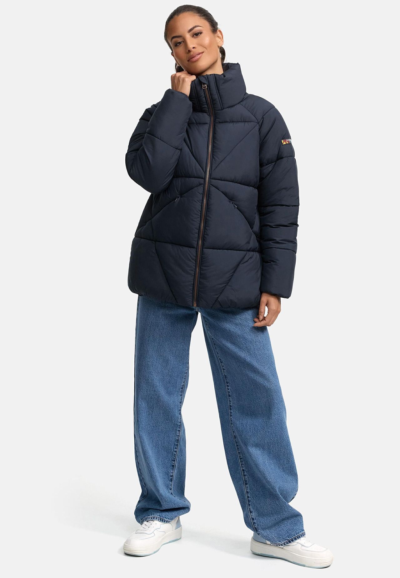 ОБРАЗ: Стильная зимняя стеганая куртка современного кроя oversize с эффектной стежкой. Высокий воротник и минималистичный дизайн делают куртку идеальным дополнением к функциональному и модному зимнему образу. МАТЕРИАЛ: Сверхгладкий ветроотталкивающий внешний материал в сочетании с толстым набивным воротником с высоким воротником обеспечивает оптимальную защиту в прохладные дни. Внутри куртка имеет шелковистую, гладкую подкладку, удобную в ношении и выделяющуюся ярким принтом. ПОСАДКА: Эта широкая и объемная куртка длиной до бедер обеспечивает максимальный комфорт и свободу движений. Покрой создает повседневный образ, который идеально подходит для многослойных нарядов. ДЕТАЛИ: Два больших внешних кармана на флисовой подкладке согреют руки и вместе с двумя внутренними карманами на молнии обеспечат практичное место для хранения вещей. Несмотря на теплую подкладку, куртка очень удобная. легкий вес. Идеально подходящая для осени и зимы, эта куртка предлагает модный стиль, высокий комфорт и надежную защиту от ветра. Привлекательная стежка и красочный принт на внутренней стороне придают ей особую индивидуальность. Модная широкая стеганая куртка с высоким воротником Очень мягкий внешний материал Теплая и легкая набивка Привлекательная стежка 2 больших кармана на молнии снаружи 2 кармана на молнии внутри Машинная стирка при 30°