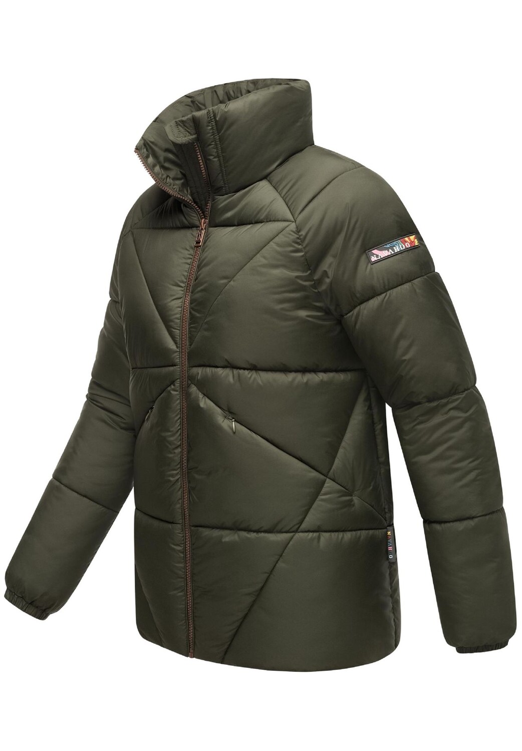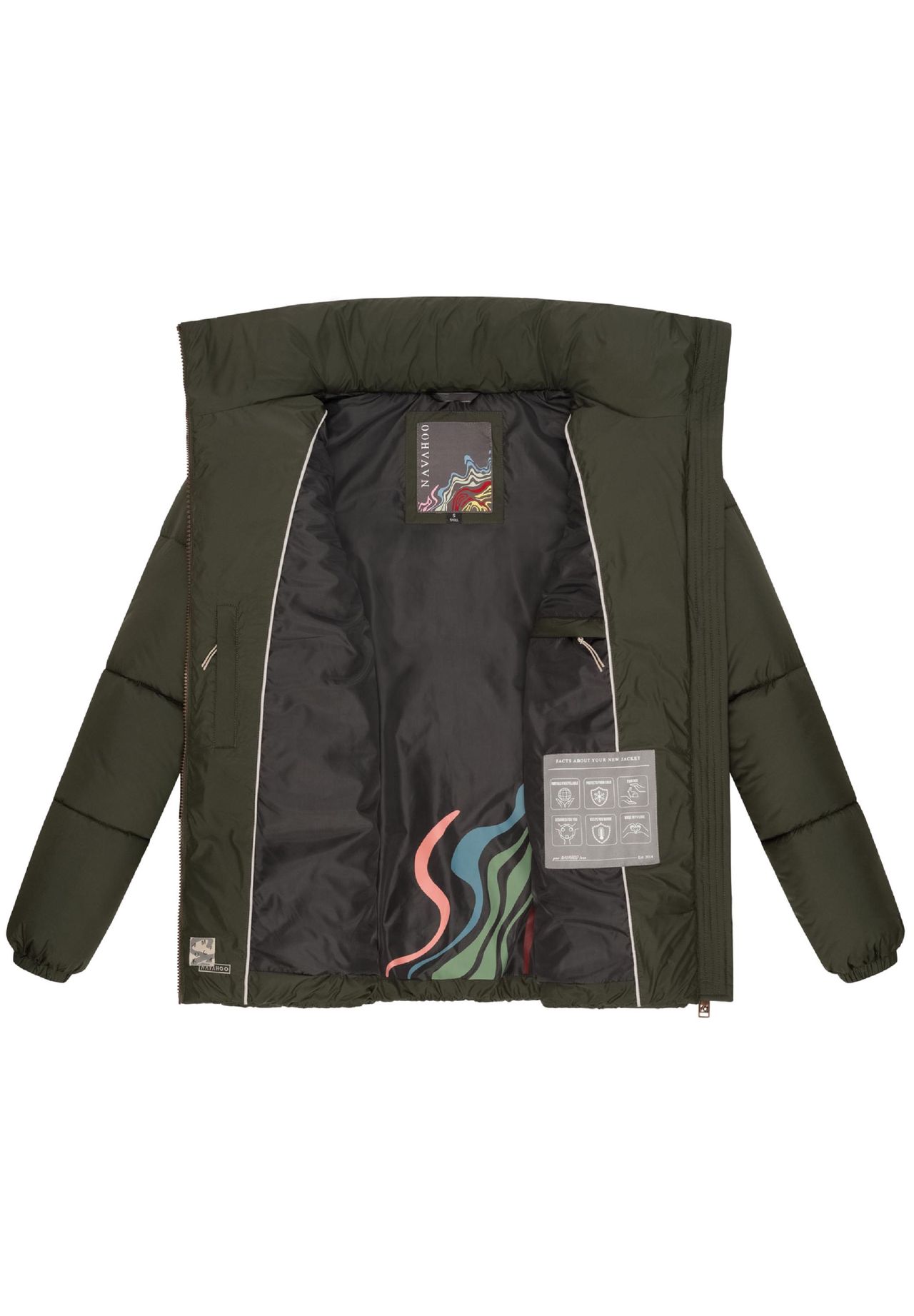 ОБРАЗ: Стильная зимняя стеганая куртка современного кроя oversize с эффектной стежкой. Высокий воротник и минималистичный дизайн делают куртку идеальным дополнением к функциональному и модному зимнему образу. МАТЕРИАЛ: Сверхгладкий ветроотталкивающий внешний материал в сочетании с толстым набивным воротником с высоким воротником обеспечивает оптимальную защиту в прохладные дни. Внутри куртка имеет шелковистую, гладкую подкладку, удобную в ношении и выделяющуюся ярким принтом. ПОСАДКА: Эта широкая и объемная куртка длиной до бедер обеспечивает максимальный комфорт и свободу движений. Покрой создает повседневный образ, который идеально подходит для многослойных нарядов. ДЕТАЛИ: Два больших внешних кармана на флисовой подкладке согреют руки и вместе с двумя внутренними карманами на молнии обеспечат практичное место для хранения вещей. Несмотря на теплую подкладку, куртка очень удобная. легкий вес. Идеально подходящая для осени и зимы, эта куртка предлагает модный стиль, высокий комфорт и надежную защиту от ветра. Привлекательная стежка и красочный принт на внутренней стороне придают ей особую индивидуальность. Модная широкая стеганая куртка с высоким воротником Очень мягкий внешний материал Теплая и легкая набивка Привлекательная стежка 2 больших кармана на молнии снаружи 2 кармана на молнии внутри Машинная стирка при 30°