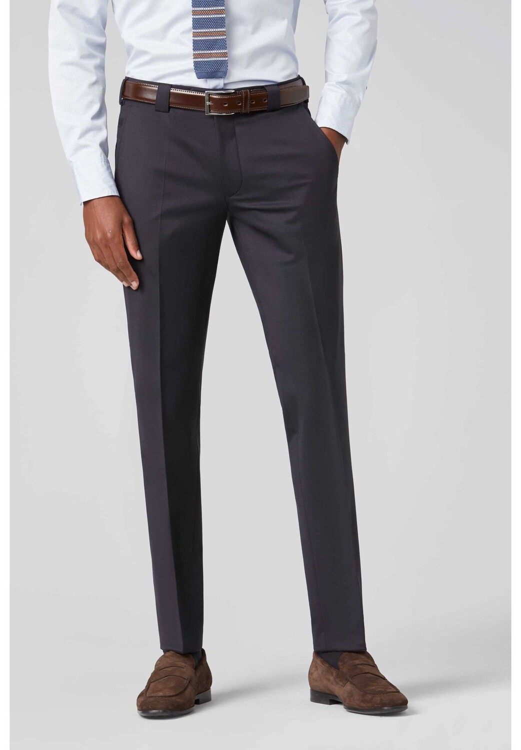 Эти удобные мужские брюки особенно впечатляют своим узким силуэтом. Специальная смесь шерсти проста в уходе и пригодна для стирки в домашних условиях. Благодаря использованному здесь специальному эластичному поясу брюки выдерживают нагрузку на несколько сантиметров и поэтому особенно удобны. Согласованная подкладка карманов и высококачественные пуговицы дополняют общую картину высокого качества.