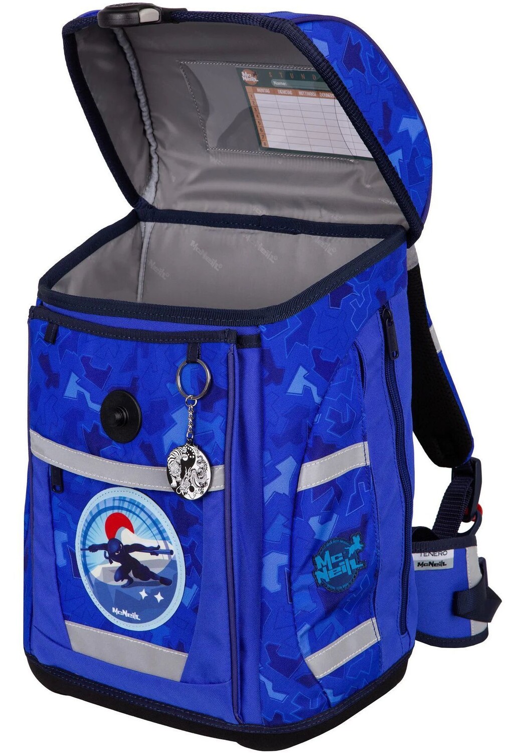 Объем поставки: 1 школьная сумка, 1 сумка для спортивной обуви, 1 наполненный пенал, 1 пенал, 1 съемный/сменный Mc