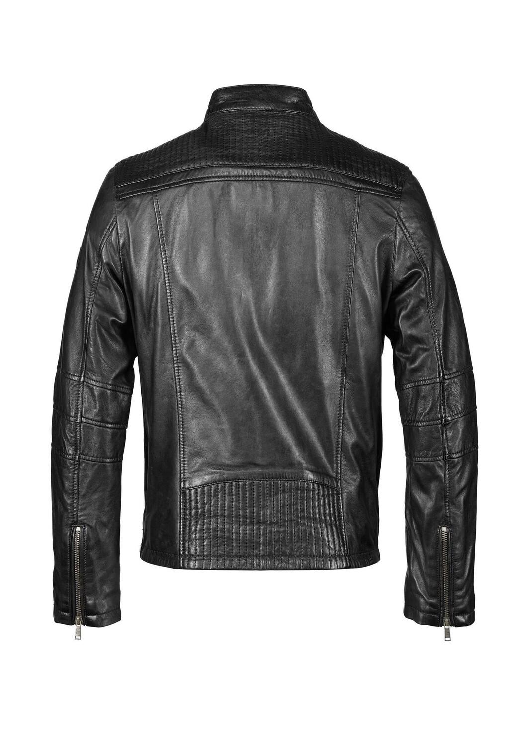 Откройте для себя современный стиль с нашей современной мужской кожаной курткой из высококачественной кожи. Эта куртка сочетает в себе функциональность и модный дизайн для современного требовательного мужчины. Рукава с молниями не только выглядят модно, но также обеспечивают гибкость и комфорт. Воротник-стойка с застежкой-кнопкой придает куртке эффектный вид и обеспечивает дополнительную защиту от ветра и непогоды. Элегантные декоративные швы и боковые карманы на молнии расставляют стильные акценты и обеспечивают надежное место для хранения вещей. Прямой крой обеспечивает удобную посадку и делает эту куртку идеальным компаньоном на любой случай.