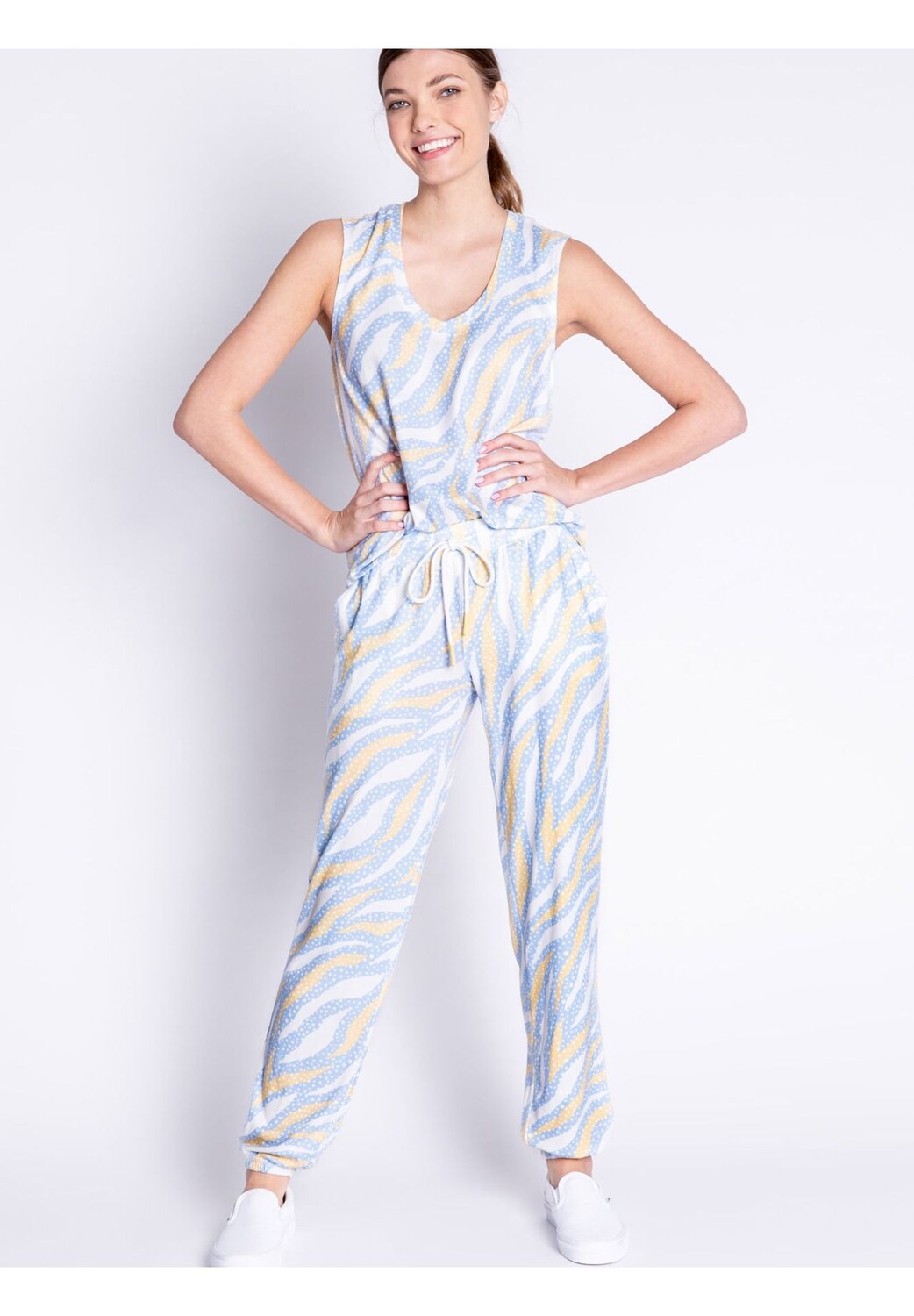 Пижамные брюки Tiger Dots от PJ Salvage с точечным тигровым принтом, боковыми карманами и завязкой на талии. Изготовлен из уютного, нежного трикотажа. Правильный компаньон для уютных часов!