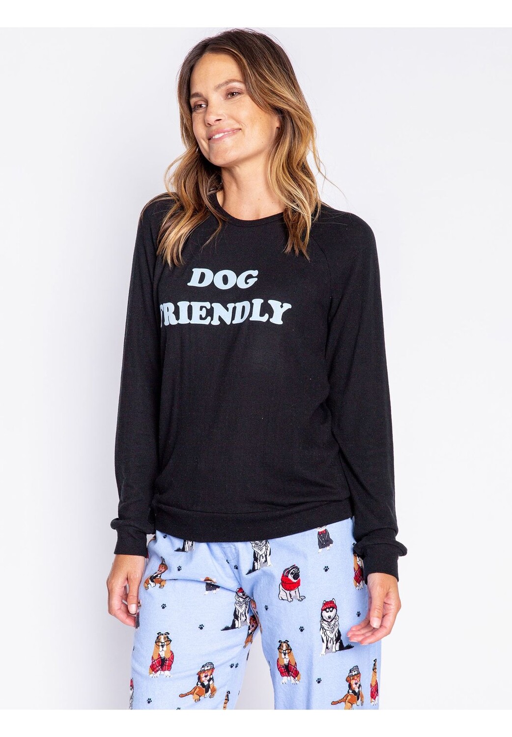 Пижамный верх «Flannels» от PJ Salvage имеет милый флокированный принт и свободный крой. Манжеты из очень мягкого трикотажа персикового цвета. Правильный компаньон для уютных часов!