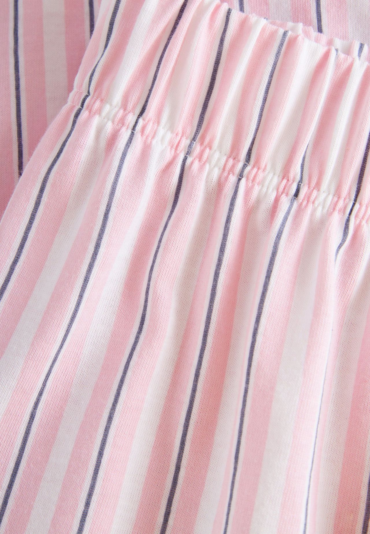 Описание предмета: Пижамный комплект, состоящий из рубашки с короткими рукавами и брюк длиной 7/8. Рубашка с круглым вырезом имеет повседневный крой, заниженные рукава и боковые разрезы по подолу для свободы движений и комфорта. Брюки оснащены удобным мягким эластичным поясом и практичными боковыми карманами. Спортивный полосатый принт завершает дизайн.