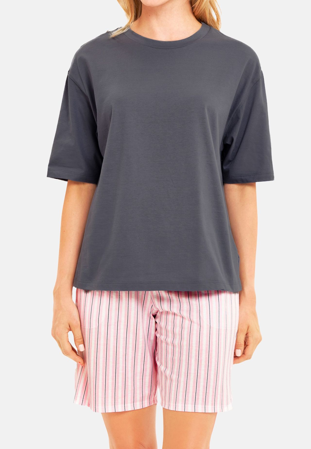 Общие инструкции по уходу: бережный цикл при температуре до 40°C, Не подвергать машинной сушке, Не подвергать химчистке, Отбеливание запрещено, Гладить при средней температуре Инструкции по уходу за тканями: Деликатный цикл при 40° C, не отбеливать, не сушить в стиральной машине, гладить при умеренной температуре, не подвергать химчистке Материал одежды: Комбинезон: 100% хлопок Описание предмета: Пижамный комплект, состоящий из рубашки с короткими рукавами и брюк длиной 7/8. Рубашка с круглым вырезом имеет повседневный крой, заниженные рукава и боковые разрезы по подолу для свободы движений и комфорта. Брюки оснащены удобным мягким эластичным поясом, имеют изящную окантовку на поясе и практичные боковые карманы. Спортивный полосатый принт завершает дизайн. Особенности: Комплект, состоящий из топа с короткими рукавами и коротких брюк Брюки с широким эластичным поясом и боковыми карманами Рубашка в стиле casual перекрывающие руки Примечание по размеру: изделие нормальное Длина: Короткое Вырез: Круглый вырез Длина рукава: Короткий рукав Карманы спереди, сзади, внутренние: Боковые карманы