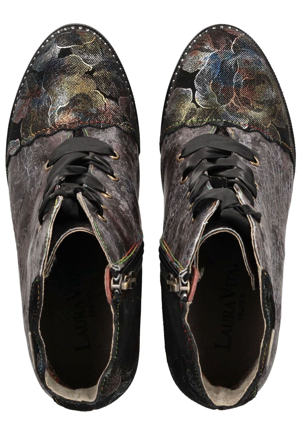В этих модных ботильонах от Laura Vita все взгляды непременно будут прикованы к их обладательнице, потому что эти шикарные ботильоны сделают любой наряд, каким бы простым он ни был, привлекательным. Ботильоны имеют прекрасный вид благодаря великолепному узору и ярким швам. Мягкая кожаная стелька обеспечивает удобную посадку. Молния для шнуровки также особенно практична: она позволяет легко и без усилий надевать ее и обеспечивает оптимальную посадку на ноге.