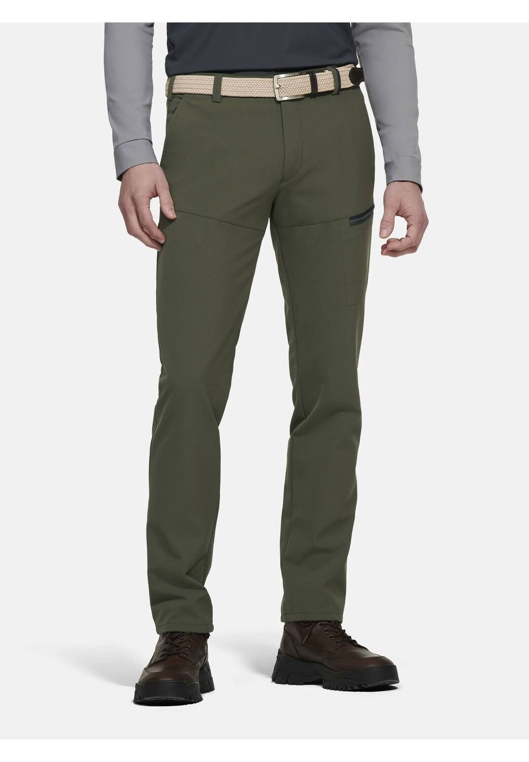 Повседневные брюки-чиносы из линии MEYER Active имеют непринужденный современный крой. На поясе имеется специальный стопор для рубашки, чтобы ничего не соскальзывало во время любых действий. Самые важные вещи найдут свое безопасное место в боковых диагональных карманах, задних карманах на молнии или грузовых карманах, также оснащенных молниями.