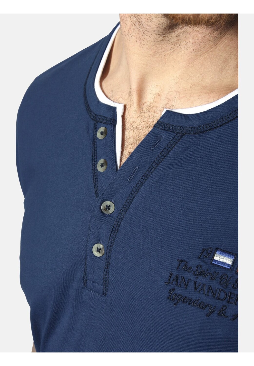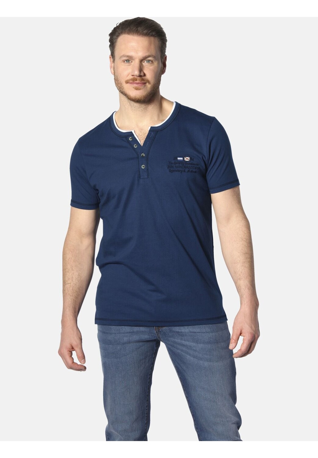 ЯН ВАНДЕРСТОРМ — ваш эксперт по мужской моде больших размеров. Всегда подходит: футболка HAFTOR от JAN VANDERSTORM сочетает в себе классическую непринужденность и современный стиль. Этот удобный топ имеет свободный вырез Serafino с четырьмя пуговицами, который привлекает внимание. Вышивка с маленькими флажками на левой груди придает скандинавский колорит и излучает морской шарм. Яркий контраст в области декольте игриво оживляет дизайн. Кроме того, швы рубашки искусно оформлены в контрастных цветах. С футболкой HAFTOR вы сможете выглядеть очень круто. Материал 100% хлопок. Машинная стирка.
