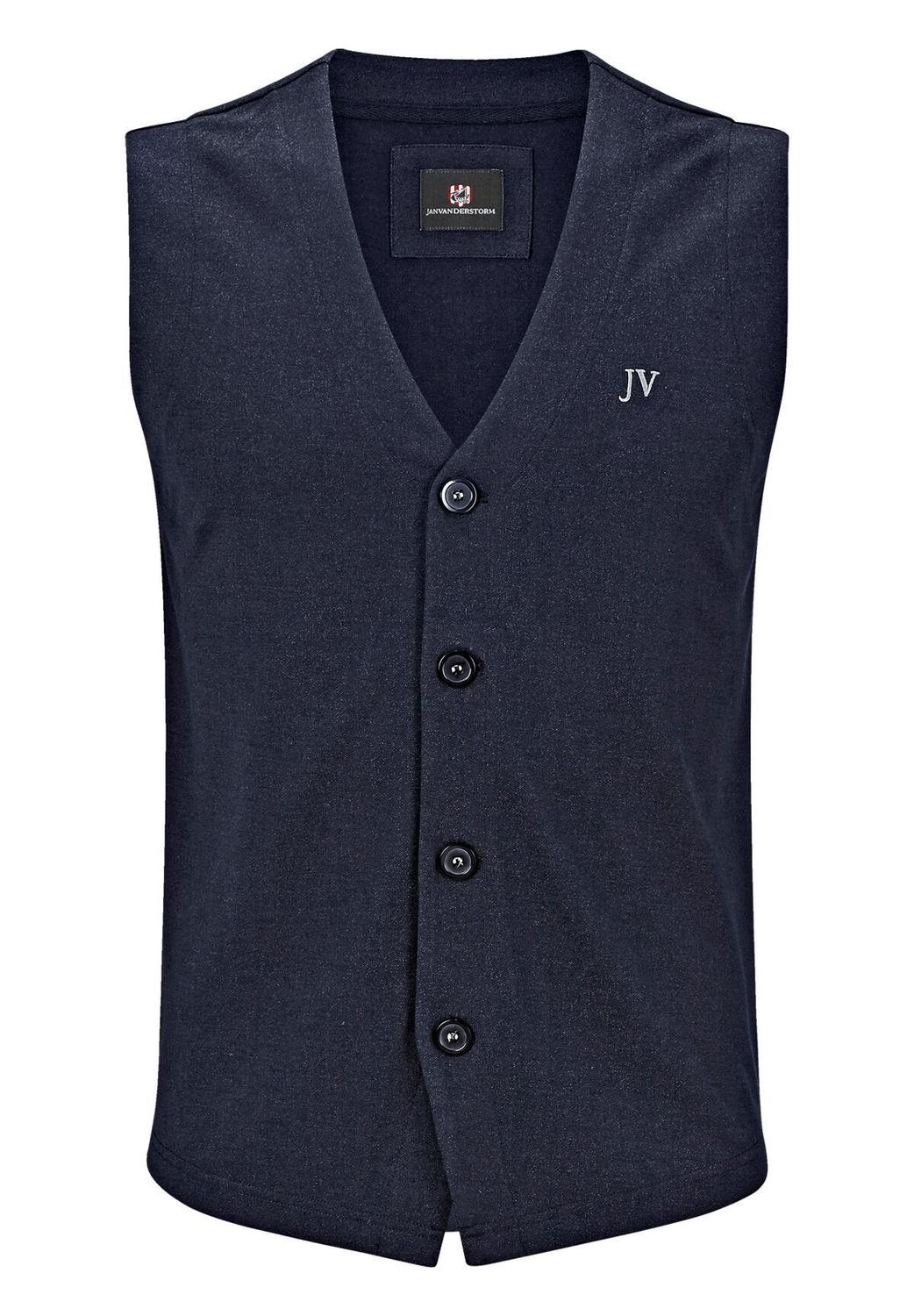 ЯН ВАНДЕРСТОРМ — ваш эксперт по мужской моде больших размеров. Дуэт в своем классе: комплект из двух предметов HOLMSTEIN, состоящий из трикотажной куртки и жилета в тон. Подходит для любого случая и очень удобен благодаря специальному сочетанию материалов. Два накладных кармана и нагрудный карман с подкладкой контрастного цвета, который можно использовать как нагрудный платок. Жилет с четырьмя пуговицами спереди и вышивкой логотипа JV контрастной нитью на груди. Состав: 53% полиэстер, 43% вискоза и 4% эластан.