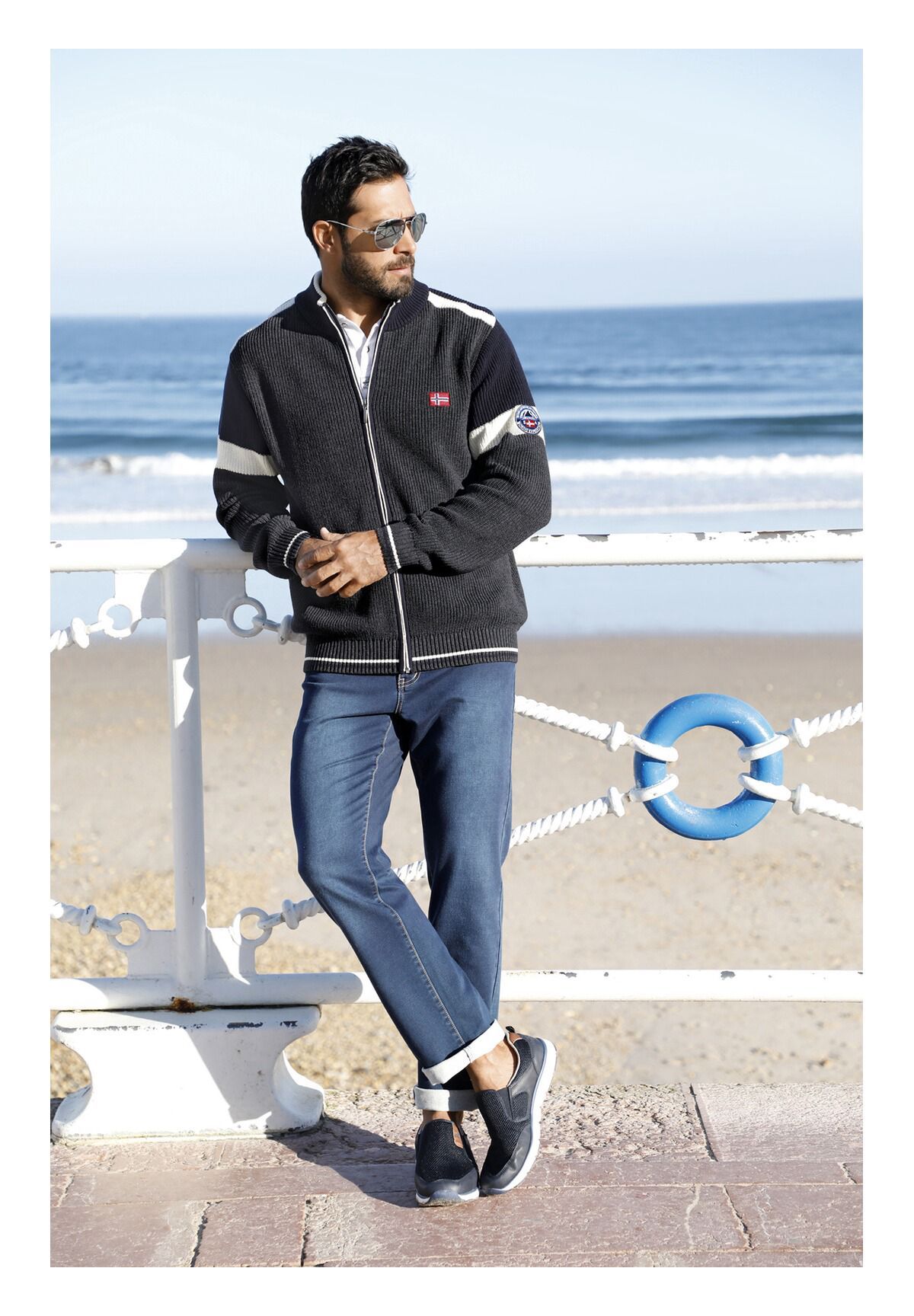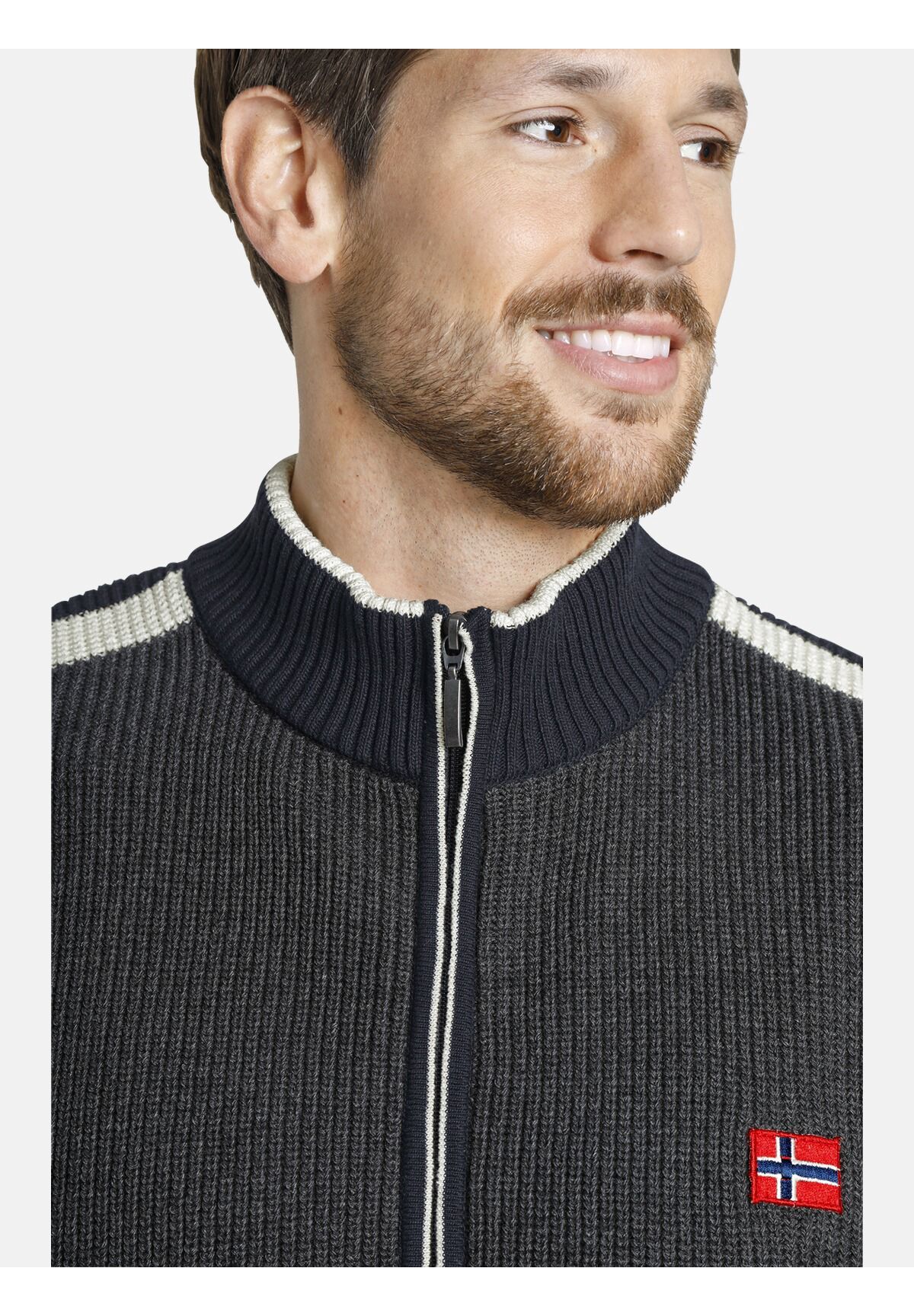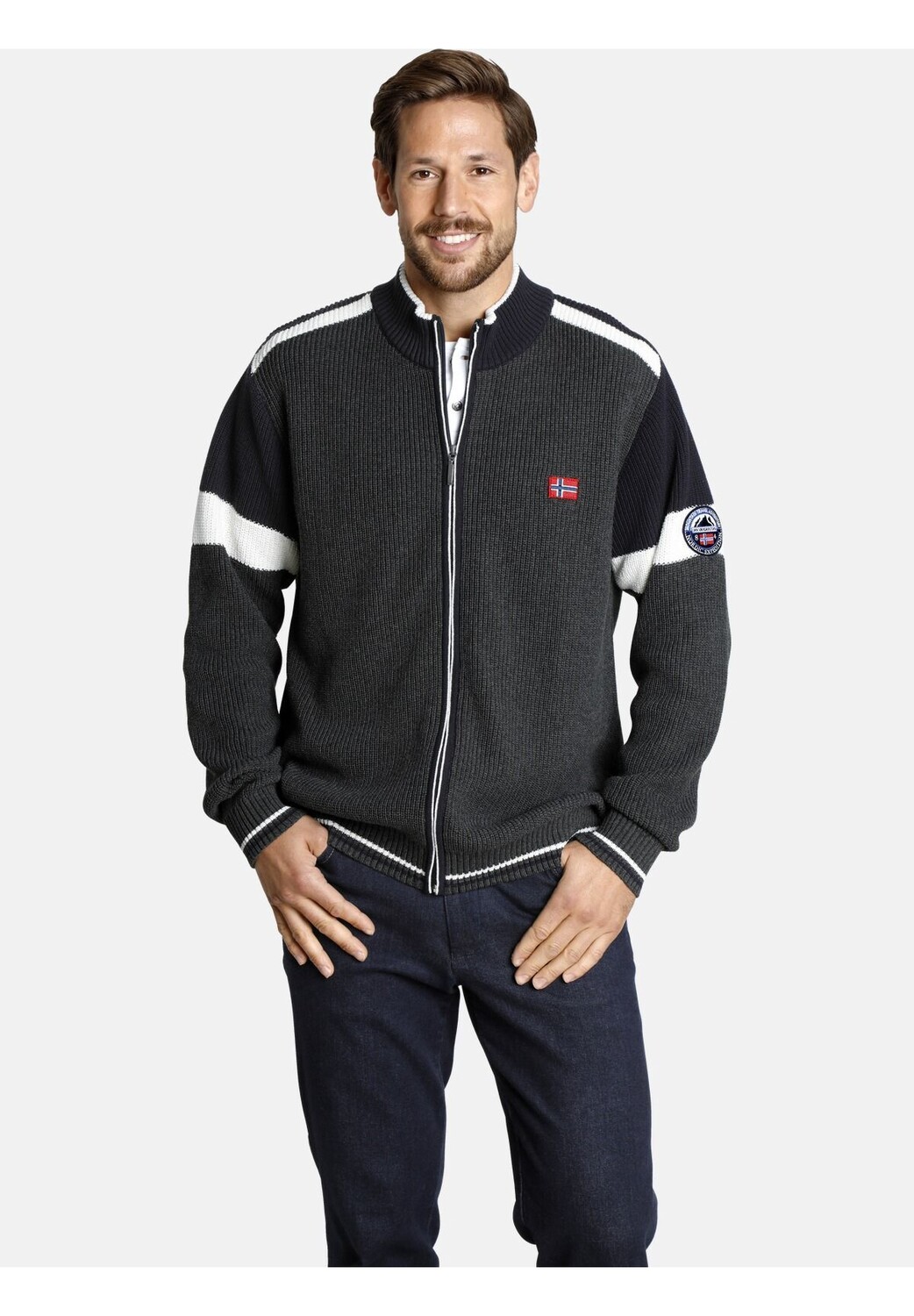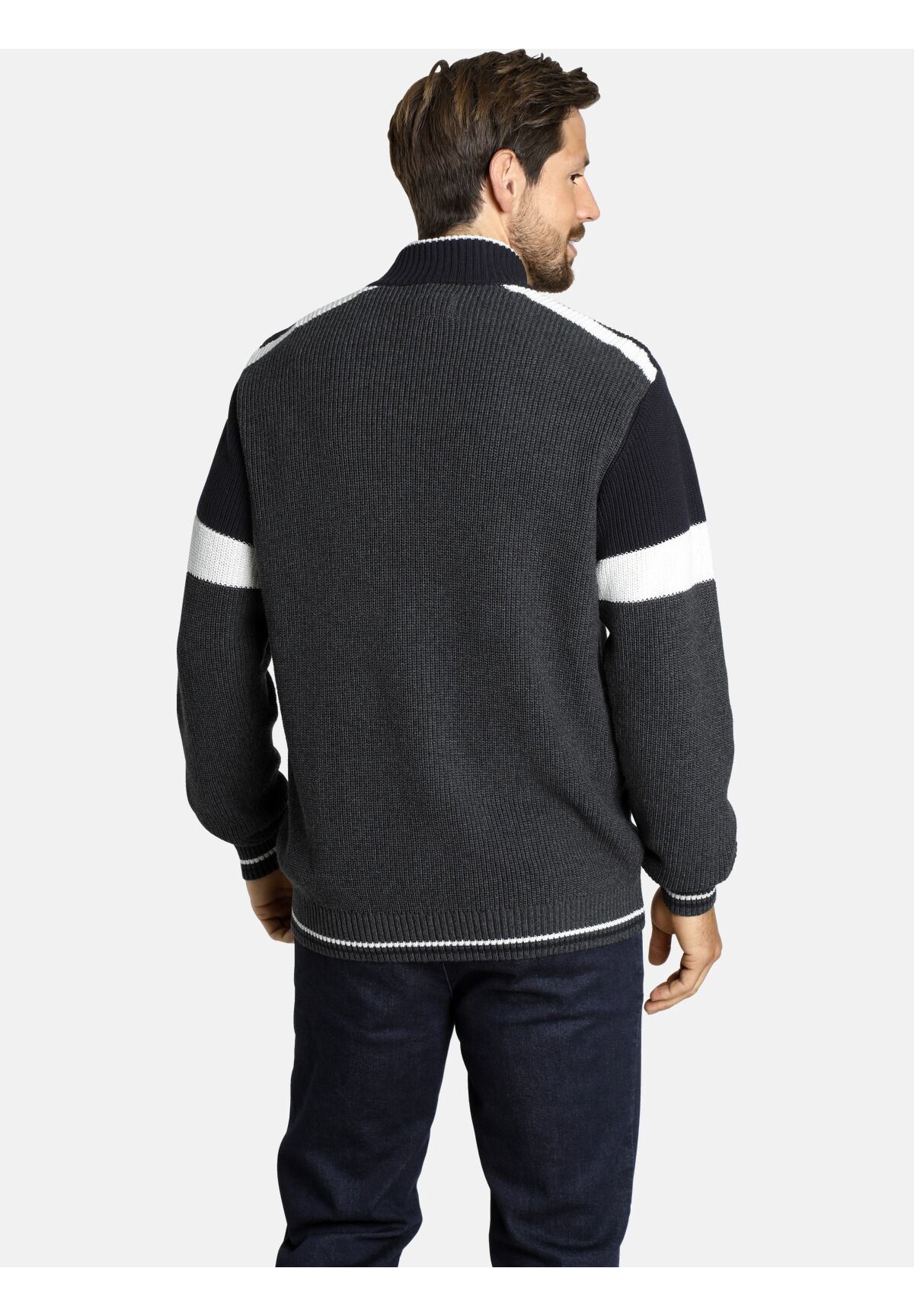 ЯН ВАНДЕРСТОРМ — ваш эксперт по мужской моде больших размеров. Надежный партнер против сильного ветра: кардиган ANVE прочной вязки грубой вязки. Гармоничные цвета и современные контрасты делают этот кардиган универсальным, который хорошо сочетается со всеми нарядами для отдыха. Быстро наденьте его, и вы готовы к спортивному образу! 50% хлопок, 50% полиакрил. Машинная стирка.
