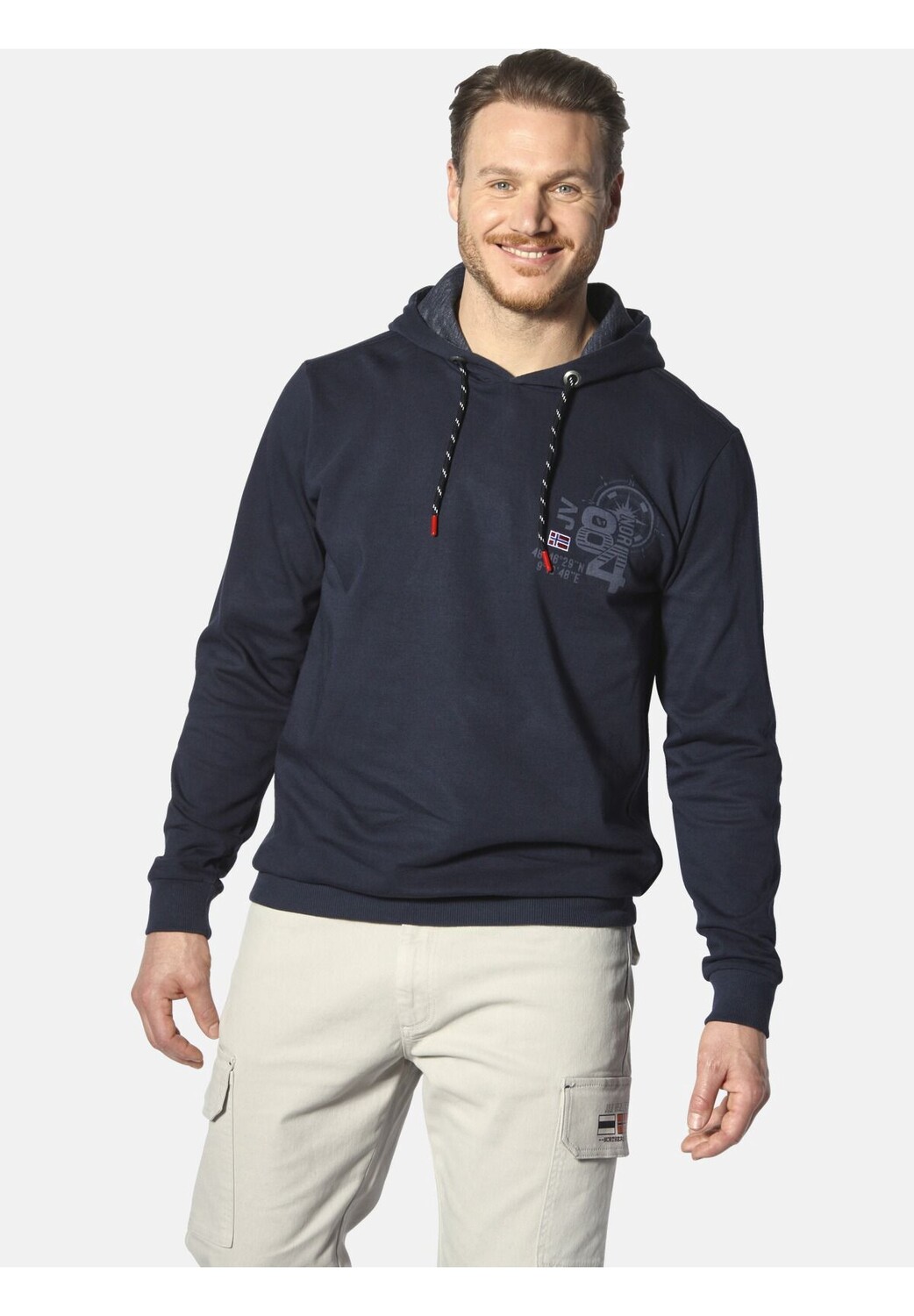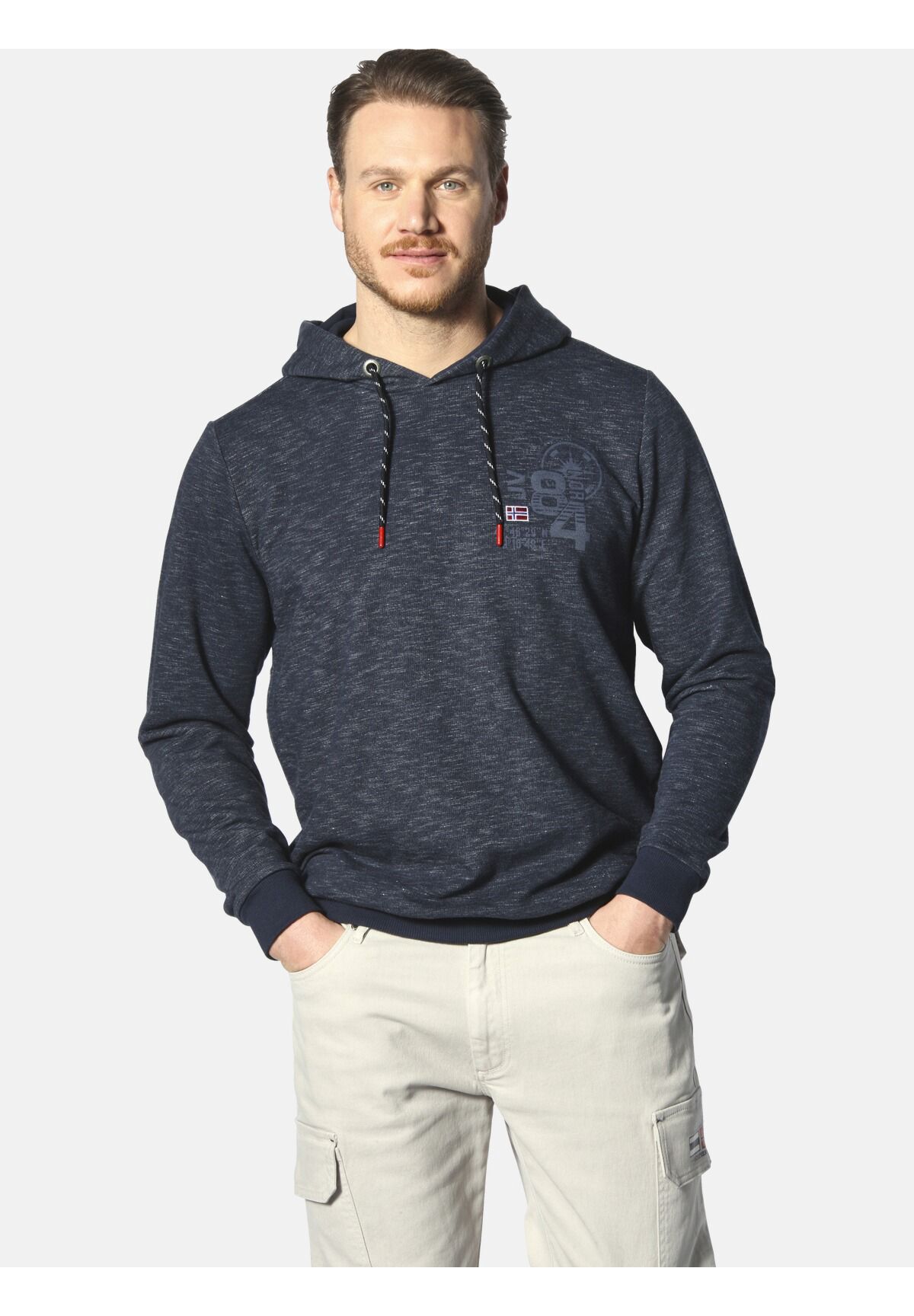 Общие инструкции по уходу: стандартная стирка при 40 °C в деликатном режиме. Инструкции по уходу за тканями: щадящий цикл при 40 °C, не отбеливать, не сушить в стиральной машине, гладить при умеренной температуре. тепло, не подвергать химической чистке Материал одежды: Всего: 70% хлопок, 30% полиэстер Описание товара: JAN VANDERSTORM — ваш эксперт по мужской моде больших размеров. Толстовка AMUND от JAN VANDERSTORM в двойной упаковке – настоящий хит для всех, кто любит морской стиль. Вы получаете две толстовки: одну с крутым пестрым рисунком, а другую однотонную, обе со стильным капюшоном и карманом-кенгуру, которые придают пикантность образу. На левой груди шикарный принт, который так и вызывает желание отправиться на море. Благодаря эластичным манжетам все сидит очень удобно и идеально. если тебе снова хочется приключений. С двойной сумкой AMUND вы сможете одновременно привнести морской стиль и комфорт в свой гардероб. КОЛЛЕКЦИЯ +FIT: Комфортный стиль из нашей коллекции +Fit. Наш специальный крой на резинке и подоле обеспечивает идеальную посадку под животом и предотвращает соскальзывание верха. Особенности: в двойной упаковке Гладить при нормальной температуре темно-синий Стирать с похожими цветами , Стирать наизнанку , Гладить наизнанку , Придавать форму во влажном состоянии , Принт не гладить Двойная упаковка свитшотов AMUND в двух вариантах +Посадка изделия: с эластичной нижней кромкой Комфортная посадка - прямой и удобный крой Хлопок, легкий в уходе Прохладный капюшон Свойства материала: легкий уход, дышащий Применение: этикетка Вышивка Примечание по размеру: изделие нормальное Крой: прямой Посадка: удобная посадка Вырез: Круглый вырез Длина рукава: Длинный рукав