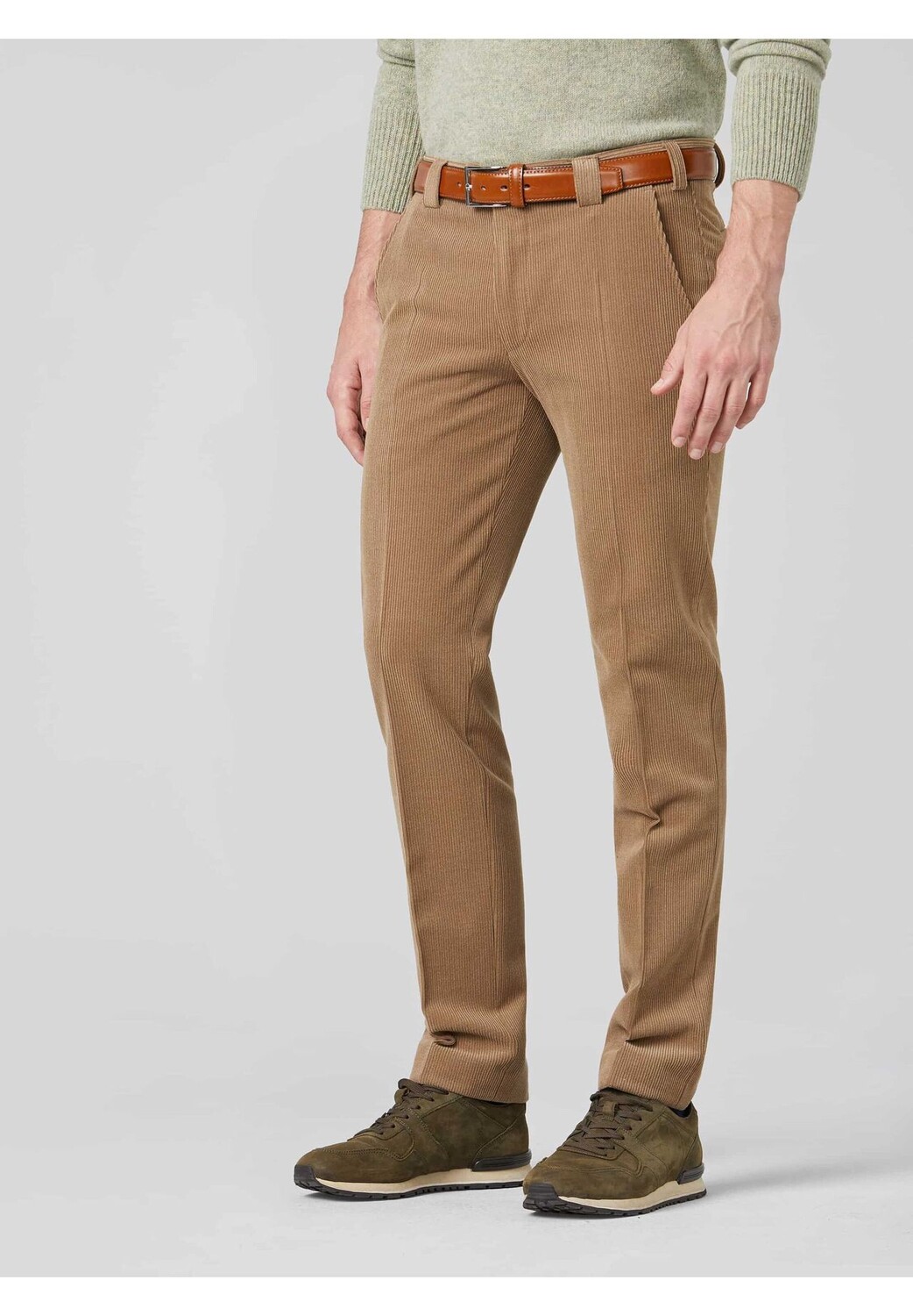 Вельветовые брюки из высококачественной шерсти Trevira узкого силуэта. 55-процентное содержание полиэстера делает брюки особенно прочными и не мнется. Это идеальный компаньон как в офисе, так и на отдыхе. Эластичный пояс длиной до трех сантиметров обеспечивает оптимальный комфорт при ношении. Ваши ценные вещи надежно хранятся в скрытом защищенном кармане.