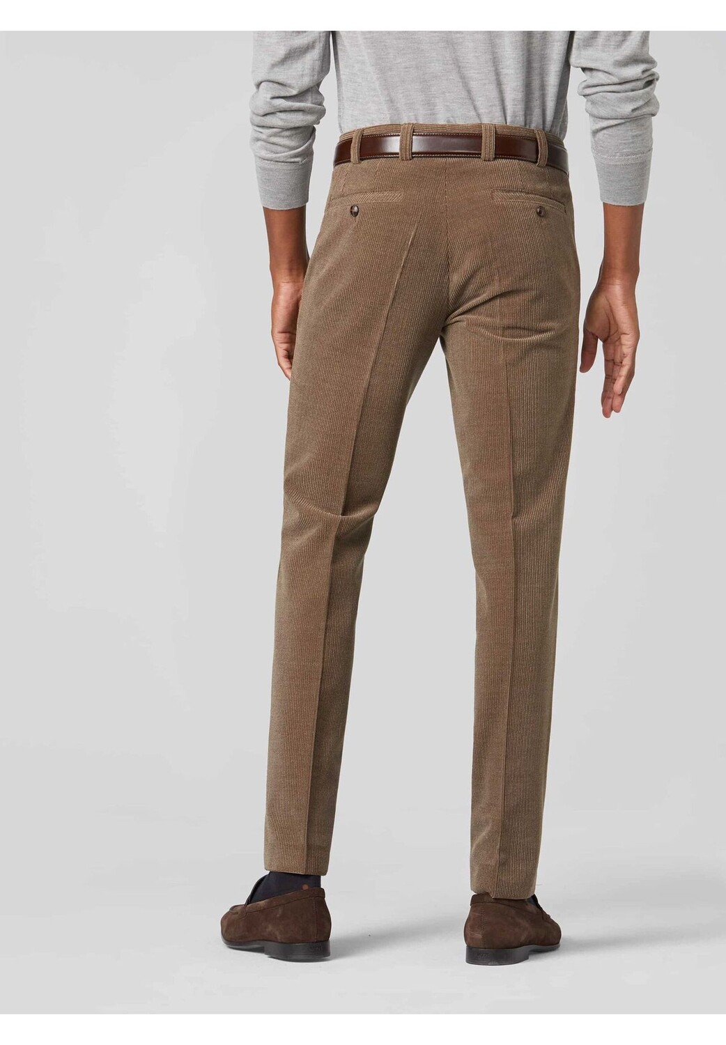 Вельветовые брюки из высококачественной шерсти Trevira узкого силуэта. 55-процентное содержание полиэстера делает брюки особенно прочными и не мнется. Это идеальный компаньон как в офисе, так и на отдыхе. Эластичный пояс длиной до трех сантиметров обеспечивает оптимальный комфорт при ношении. Ваши ценные вещи надежно хранятся в скрытом защищенном кармане.