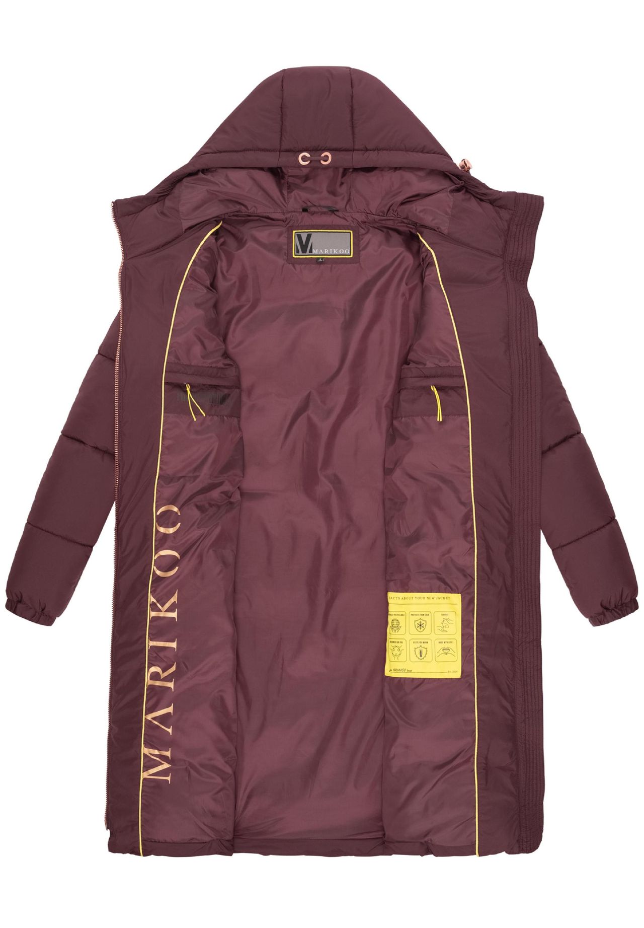ВЗГЛЯД: Зимнее стеганое пальто сочетает в себе спортивную элегантность и современный крой. Детали розового цвета, такие как молнии и логотипы, придают пальто особенно элегантный вид. Идеально подходит для создания универсальных и шикарных зимних образов. МАТЕРИАЛ: Изготовлено из высококачественного синтетического материала, пальто обладает водо- и ветроотталкивающими свойствами. Высококачественная теплая подкладка обеспечивает оптимальную защиту от холода. а приятный легкий вес обеспечивает высокий уровень комфорта. ПОСАДКА: От прямого до слегка широкого кроя и длиной до ок. Длинная зимняя куртка обеспечивает удобную посадку в коленях. Высоко застегивающаяся молния и регулируемый по ширине капюшон обеспечивают дополнительную защиту от ветра и холода. ДЕТАЛИ: Практичные внешние карманы на флисовой подкладке с кнопками согреют руки и в сочетании с двумя внутренними карманами на молнии обеспечат достаточно места для хранения вещей. Встроенная эластичная лента на концах рукавов предотвращает проникновение ветра. Стеганое пальто впечатляет не только своим элегантным дизайном с элегантными акцентами из розового золота, но и своей исключительной пригодностью для холодных дней. Обязательно для каждого кто ценит шикарную и функциональную осеннюю и зимнюю моду. Модное женское зимнее стеганое пальто, качественные детали розового цвета, крой от прямого до широкого, супердлина до колен, регулируемый капюшон, 2 наружных кармана на кнопке на подкладке, 2 внутренних кармана на молнии, двусторонняя молния с защитой подбородка, машинная стирка при 30°С