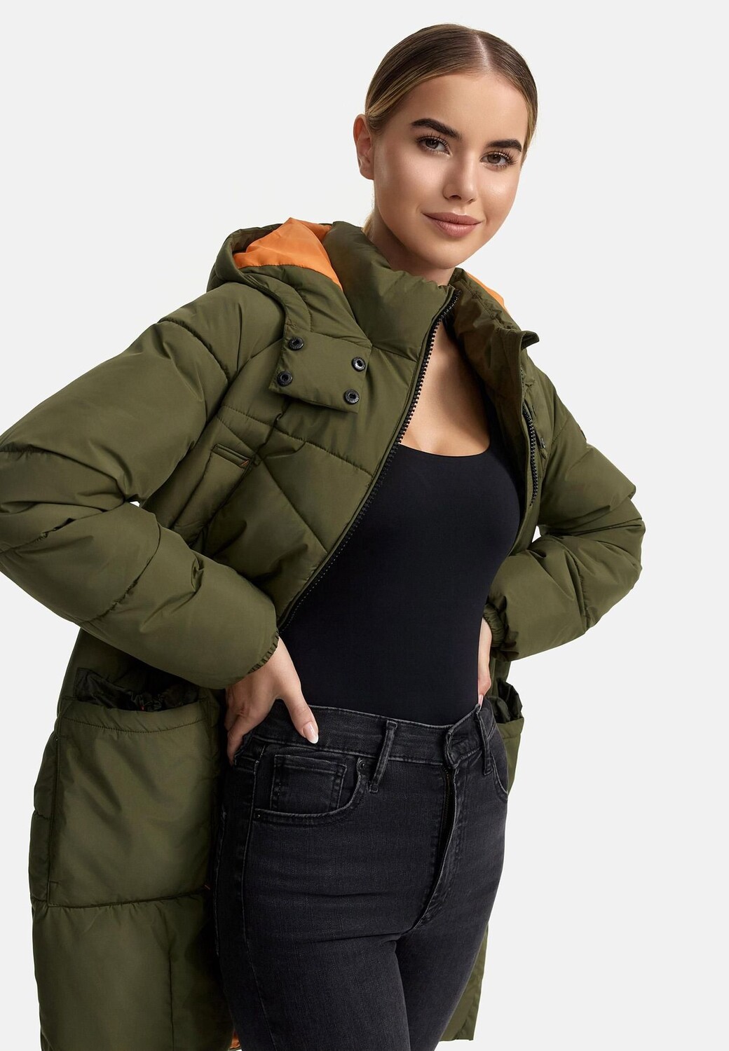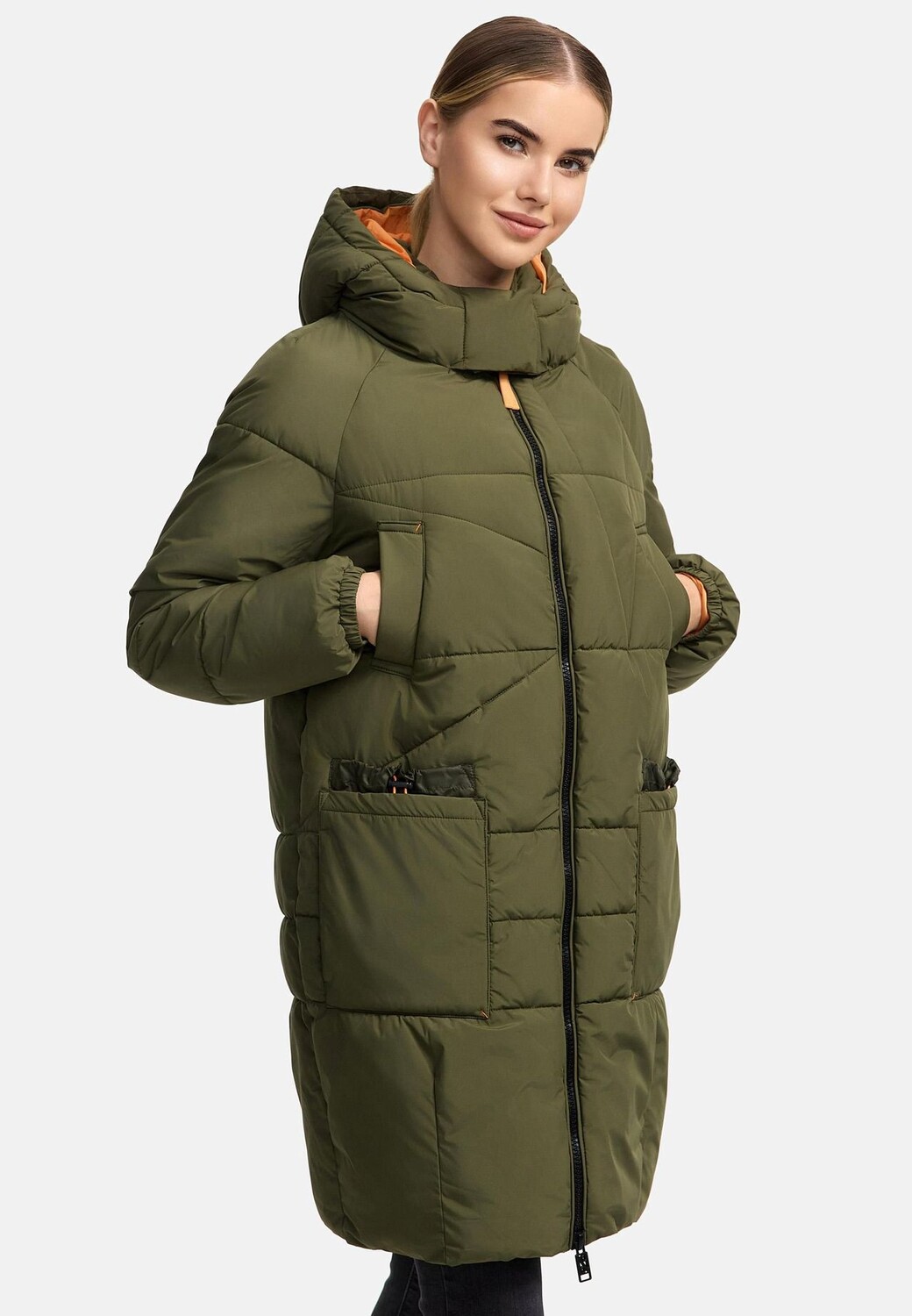 ВЗГЛЯД: Пальто впечатляет своим современным дизайном, который идеально вписывается в повседневную городскую жизнь. Длина до колена придает элегантный силуэт, а контрастные детали, такие как привлекательная внутренняя подкладка, придают образу модный оттенок. УСТОЙЧИВЫЙ МАТЕРИАЛ: Стеганое пальто, изготовленное из прочного переработанного материала, надежно защищает от ветра и влаги. Водоотталкивающие свойства гарантируют, что вы останетесь сухими даже под небольшим дождем, а пальто на открытом воздухе также удобно носить. ПОСАДКА: прямой крой и длина до колена создают неподвластную времени элегантность, которая подойдет любой фигуре. Высокий воротник и защита подбородка обеспечивают дополнительную защиту от холодного ветра. Женское пальто можно индивидуально отрегулировать с помощью кнопок на капюшоне. для обеспечения максимального комфорта. ДЕТАЛИ: Куртка для активного отдыха — настоящее космическое чудо: два внутренних кармана на молнии и восемь внешних карманов вместят все ваши важные вещи. Эластичные рукава заканчиваются внутренней резинкой и двусторонней молнией, что обеспечивает гибкость и практичность использования. Эта длинная зимняя куртка сочетает в себе функциональность и модные детали. Он идеально подходит для холодных и влажных дней и предлагает достаточно места для хранения всей необходимой посуды. Регулируемый капюшон и продуманные карманы делают ее незаменимым спутником зимнего гардероба. Женское зимнее стеганое пальто Прямого кроя длиной до колен Двусторонняя молния с защитой подбородка 2 нагрудных кармана на подкладке 6 наружных карманов (2 на кулиске, 4 на флисовой подкладке) 2 внутренних кармана на молнии Машинная стирка при 30°C