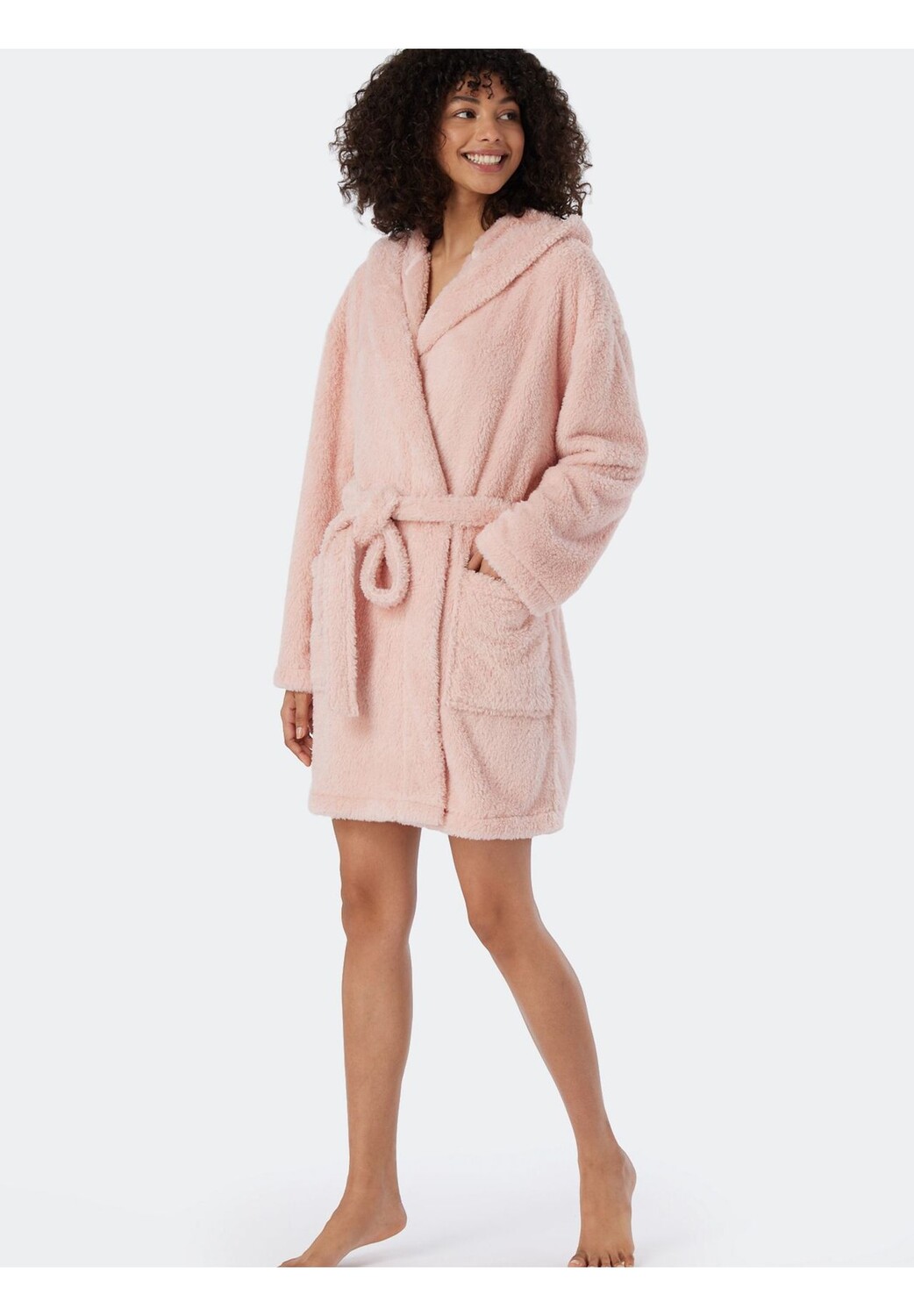Представляем: Наш милый любимец в модной короткой форме! Этот халат просто идеален для женщин, которые любят тепло и уют. Потому что короткое пальто из-за очень пушистого и легкого плюшевого флиса создает ощущение нежного объятия. Большой капюшон, регулируемый ремень и накладные карманы добавляют очаровательных деталей. Все, чего не хватает, — это лучшего, устойчивого качества SCHIESSER, и ничто не помешает истинному счастью дома!