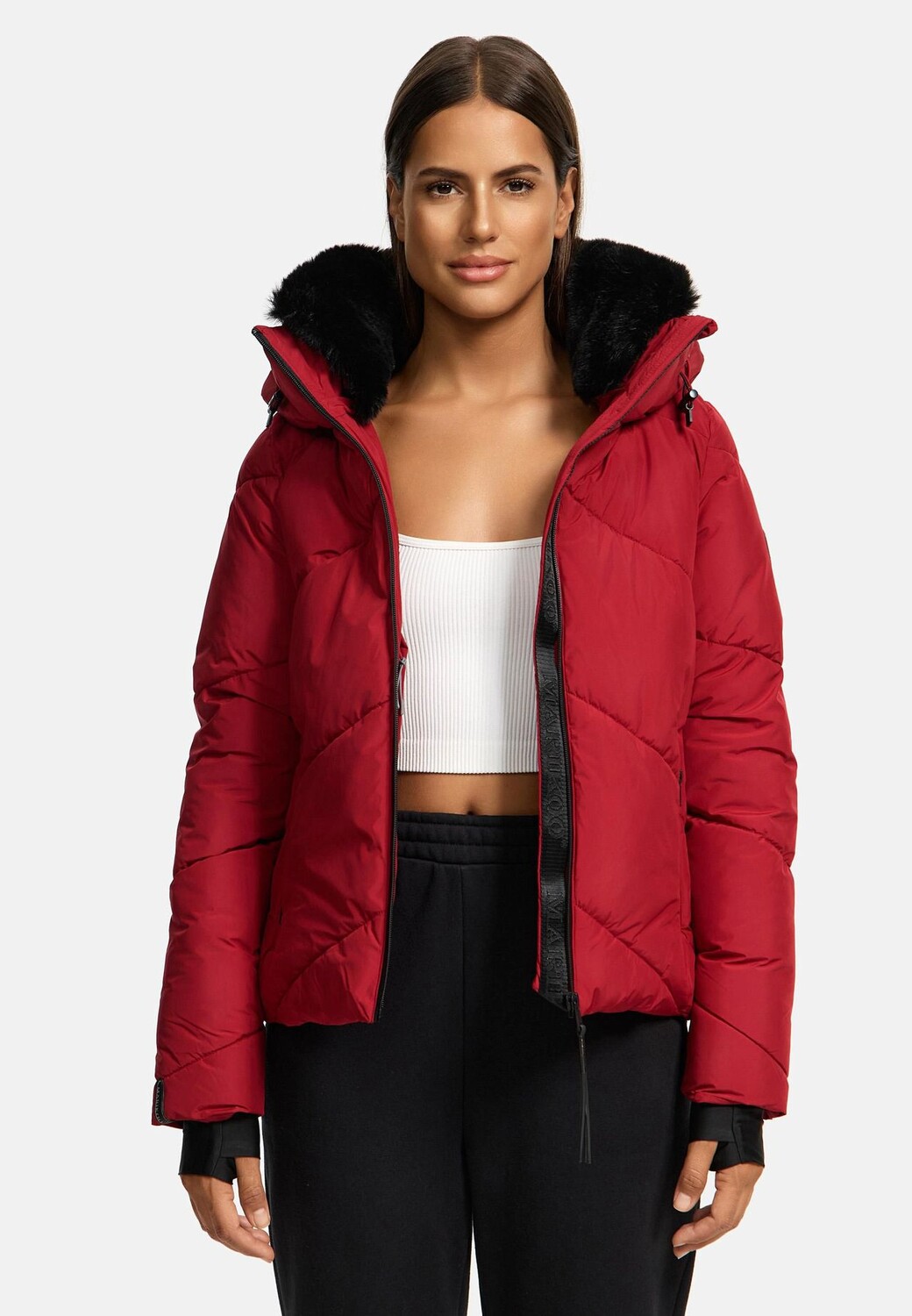 ВИД: Современная зимняя стеганая куртка впечатляет своим спортивным, элегантным видом и изысканным стеганым узором. Идеально подходит для холодных дней, его можно комбинировать разными способами, будь то повседневный или городской. Стильный вариант на зиму. МАТЕРИАЛ: Благодаря водонепроницаемому и ветронепроницаемому наружному материалу куртка для активного отдыха надежно защитит от непредсказуемой погоды осенью и зимой. Гладкий, легкий и нескользящий материал обеспечивает высокий уровень комфорта, а внутренняя подкладка сохраняет тепло. ПОСАДКА: Осенняя куртка длиной до бедра подчеркивает фигуру и подчеркивает силуэт благодаря женственному крою. Съемный регулируемый капюшон и высокий воротник на подкладке с уютной отделкой из искусственного меха обеспечивают дополнительную защиту от ветра и непогоды. ДЕТАЛИ: Практичные функции, такие как водонепроницаемая молния спереди, манжеты с отверстиями для больших пальцев. два внутренних и два боковых кармана делают куртку особенно функциональной. Съемная отделка из искусственного меха на воротнике придает изделию элегантный вид. Эта стеганая зимняя куртка обеспечит оптимальную защиту и стиль для холодных зимних дней и переменчивой погоды. Идеально подходит для повседневной жизни или активного отдыха, сочетает в себе функциональность и модный дизайн. Спортивная, элегантная зимняя стеганая куртка длиной до бедра от Marikoo. Водонепроницаемый и ветронепроницаемый внешний материал. Большой съемный капюшон (регулируемый шнурком). Высокий воротник с уютной отделкой из искусственного меха. Водонепроницаемая передняя молния. 2 внутренних кармана. 2 наружных кармана с водонепроницаемыми молниями. Эластичные манжеты с отверстие для большого пальца Щадящий цикл при 30 градусах