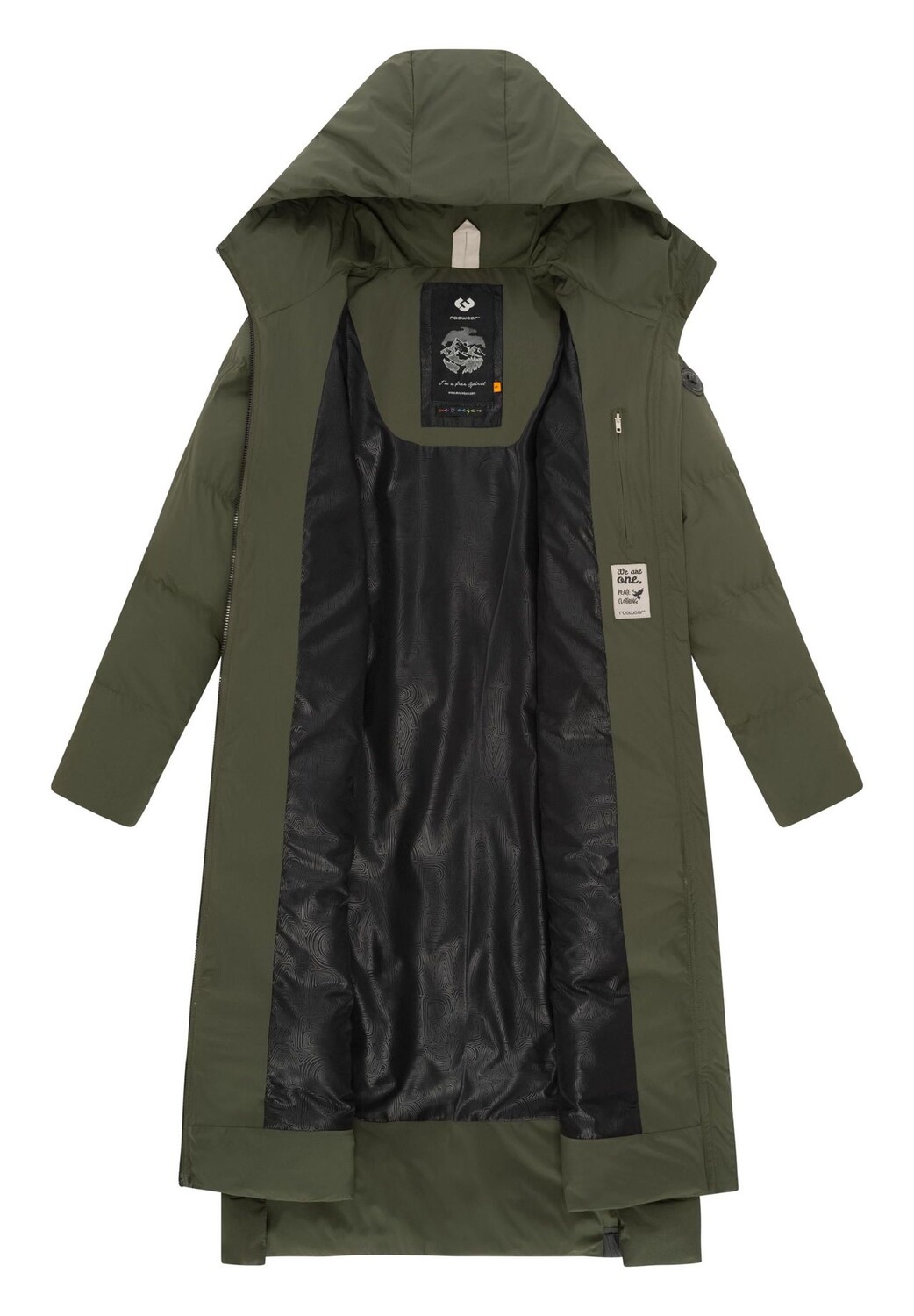 ВИД: Теплая, очень длинная женская зимняя куртка с широкой стежкой, боковыми разрезами и многочисленными деталями от модного лейбла уличной одежды Ragwear, 100% веганское производство. МАТЕРИАЛ: Очень удобно носить благодаря гладкой шелковистой внутренней подкладке, внешний материал не только водонепроницаемая (водяной столб 8000 мм), ветроустойчивая и дышащая, а также простая в уходе и грязеотталкивающая. ПОДХОДИТ: пуховик идеальной длины до ок. до середины икр, благодаря повседневному прямому крою отлично сидит, его удобно носить с толстым свитером под ним. ДЕТАЛИ: Женское пальто с большими боковыми карманами на молнии, которые обеспечивают много места для хранения, а также гарантируют тепло рукам благодаря флисовая подкладка по бокам. Несмотря на длину, прорези для ходьбы обеспечивают свободу движений. Модное женское зимнее пальто на теплой подкладке с капюшоном. красиво сшито и с множеством деталей - настоящий фаворит холодного времени года! (Осень/Зима) Современная женская зимняя парка от Ragwear. Высочайшее качество, идеальный крой, слегка скроенный крой. Супер длина до ок. До середины икры Тонко стеганый, водонепроницаемый внешний материал со структурой водяного столба 8. 000 мм воздухопроницаемость на уровне 5. 000 Теплая внутренняя подкладка с узорным принтом Большой капюшон и высокий воротник Асимметричный крой (сзади длиннее, чем спереди) Куртка с высокой застежкой (защита шеи от холода) Двусторонняя молния 2 больших боковых кармана на молнии Внутренние эластичные края рукавов Многочисленные нашивки с логотипом из искусственной кожи Искусственная кожа с тиснением логотипа Ручки можно стирать в машине при 30°C