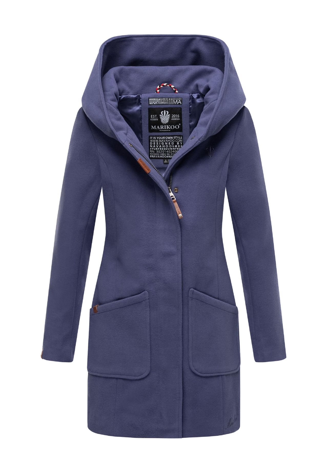 ВИД: Элегантное женское пальто в стиле шерстяного пальто с большим капюшоном от Marikoo, прекрасно сочетается с элегантными или городскими образами. МАТЕРИАЛ: Женское полупальто из мягкой внешней ткани в шерстяном стиле (не царапается), внутренняя подкладка из бархатистая, блестящая, гладкая ткань. ФИКСАЦИЯ: Слегка индивидуальный покрой. Зимняя куртка идеальной длины по низу, очень удобная в ношении. ДЕТАЛИ: Элегантная шерстяная куртка с планкой на кнопках перед передней молнией, большим капюшоном с вышитым логотипом и практичной большой боковой частью. карманы Эта стильная женская зимняя парка в шерстяном исполнении впечатляет классическим и элегантным видом и идеальной посадкой - идеально подходит для холодного сезона (осень и зима). Элегантное зимнее пальто в шерстяном стиле от Marikoo. Высочайшее качество, идеальный крой. Слегка скроенный крой Супер длина по низу Мягкая внешняя ткань, имитирующая шерсть, с содержанием искусственного шелка (не царапается) Высокое качество материалов Внутренняя ткань из бархатистого, блестящего, эластичного материала Большой капюшон с элегантной вышивкой логотипа Передняя молния, покрытая планка на кнопках 2 больших передних кармана 1 внутренний карман с направляющей для кабеля для смартфона Стильные нашивки с логотипами из искусственной кожи Машинная стирка при 30°C