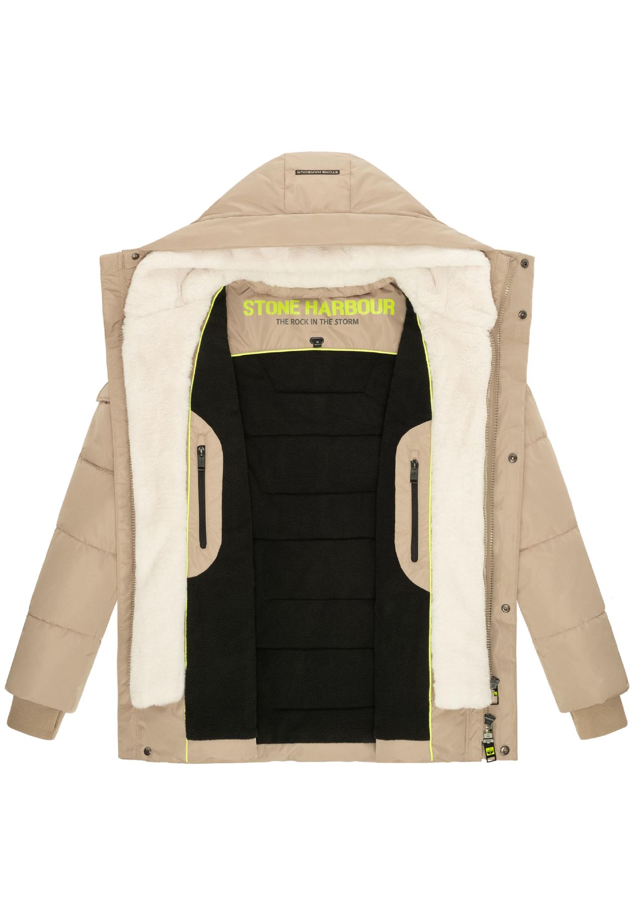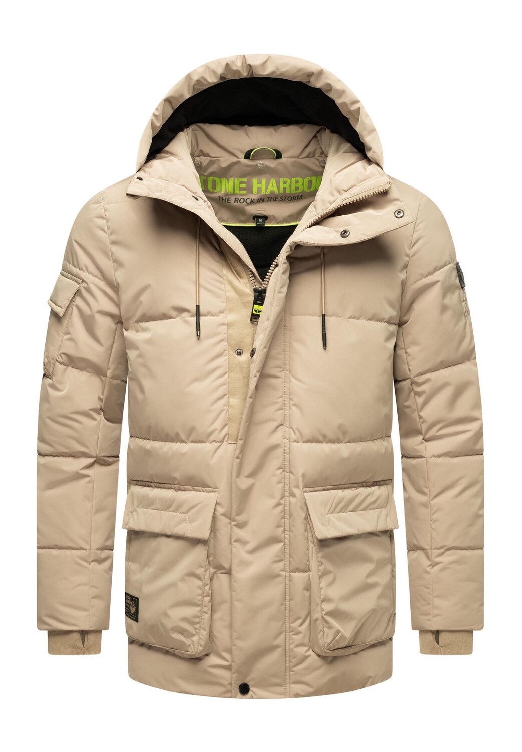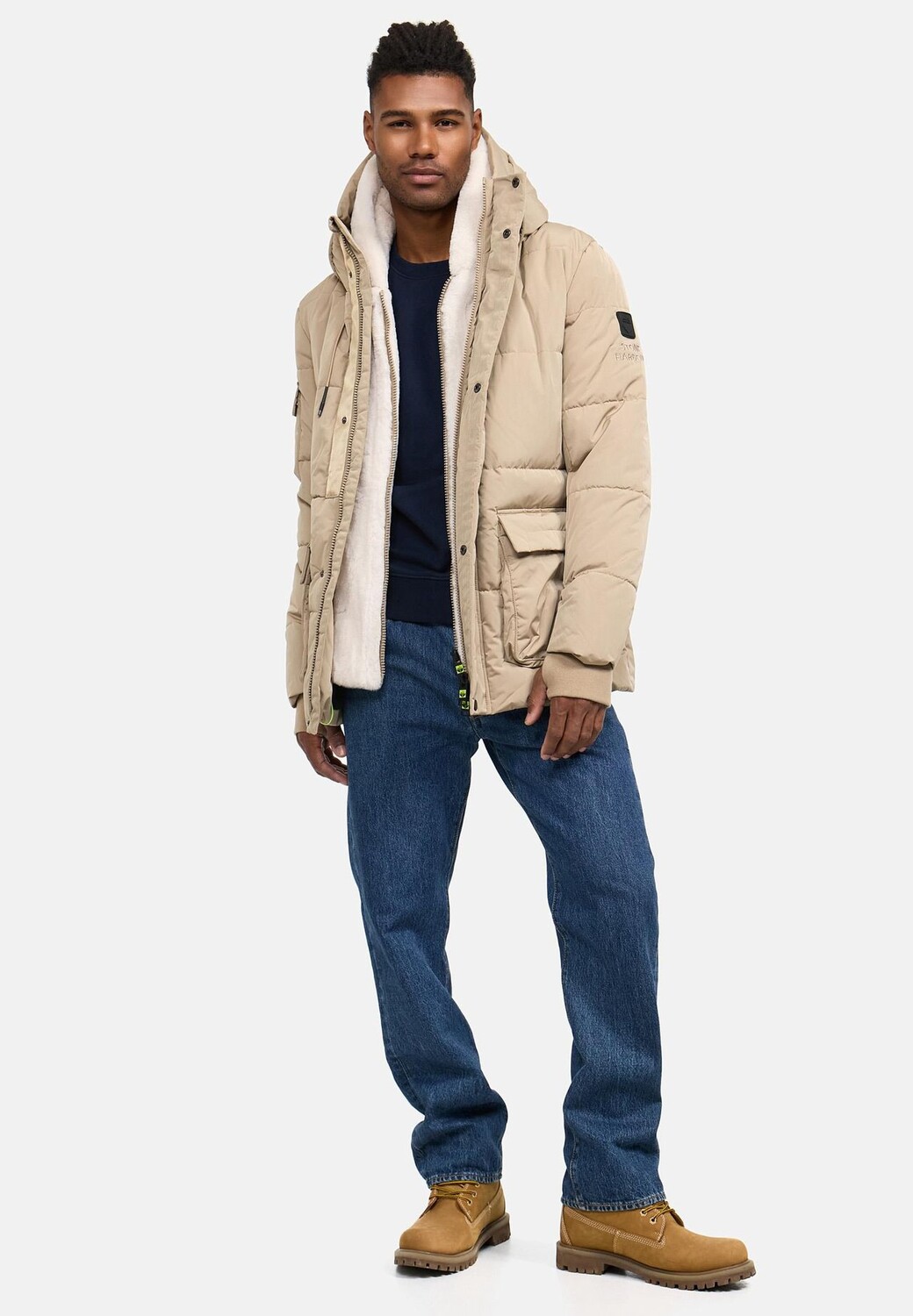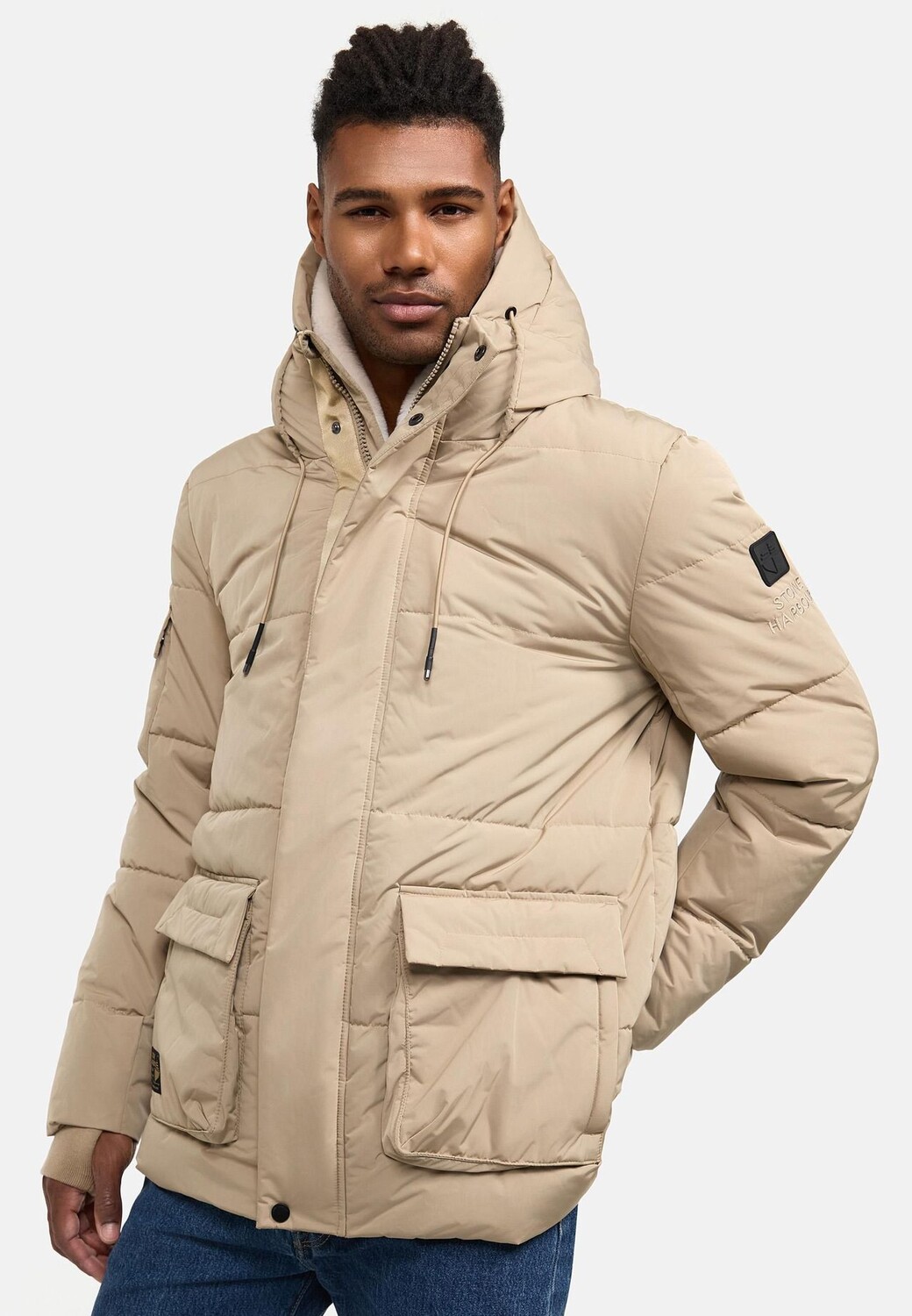 ВНЕШНИЙ ВИД: Зимняя стеганая куртка впечатляет своим городским, современным видом. Тонкие детали подобранного цвета выглядят очень качественно в сочетании с матовым блестящим верхним материалом. МАТЕРИАЛ: Прочный и нескользящий внешний материал обладает водо- и ветроотталкивающими свойствами, что делает куртку идеальной для изменчивых погодных условий. Внутри он на подкладке из приятного мягкого флиса и в сочетании с мягкими трикотажными манжетами с отверстиями для большого пальца сохраняет тепло даже в особенно холодные дни. ПОСАДКА: Прямой, удобный крой обеспечивает удобную посадку, закрывает нижнюю часть и обеспечивает достаточную свободу движений. Регулируемый шнурок на капюшоне и двусторонняя молния обеспечивают гибкую регулировку. которые способствуют комфорту и стилю. ДЕТАЛИ: Уютная мягкая вставка из искусственного меха от капюшона до подола обеспечивает дополнительное тепло. Однако при желании его также можно легко снять с помощью молнии. Грязеотталкивающая куртка для активного отдыха оснащена многочисленными карманами, в которых достаточно места для хранения вещей: два боковых кармана с клапанами и карманы на молнии. карман на рукаве с кнопками и два внутренних кармана на молнии. Эта универсальная зимняя куртка идеально подходит для использования в холодную и переменчивую погоду. Благодаря продуманным функциям и современному дизайну он станет идеальным спутником для активного отдыха и повседневной жизни осенью и зимой. Городская мужская зимняя парка STONE HARBOR Прямого кроя Длина по низу (съемная) Вставка из искусственного меха 2 наружных кармана на молнии 2 наружных кармана с клапанами 2 внутренних кармана на молнии 1 карман на рукаве Машинная стирка при 30°C