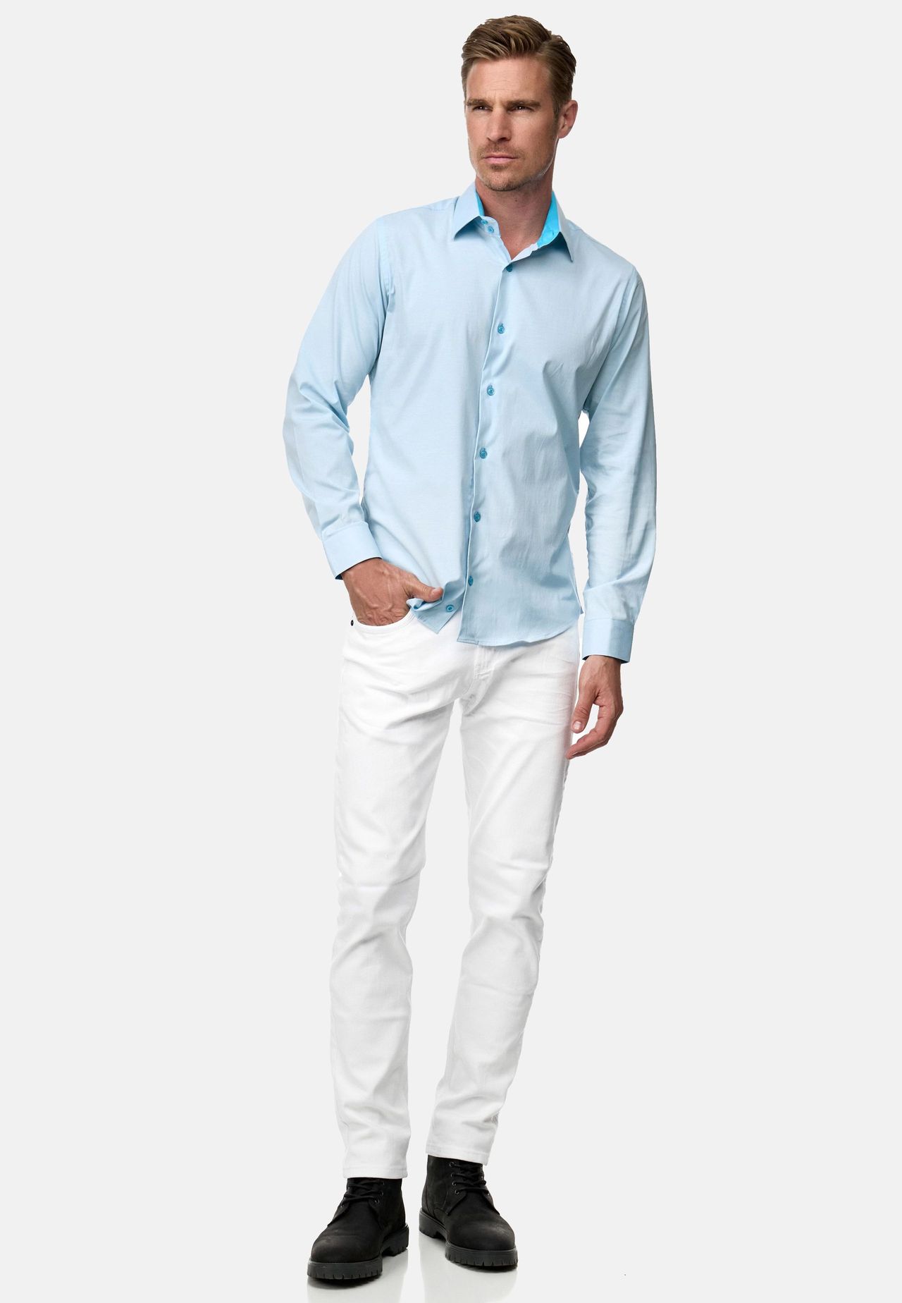 Общие инструкции по уходу: стирка при температуре до 30°C. Материал одежды: Всего: 60% хлопок, 37% полиэстер, 3% эластан Описание товара: Рубашка с длинными рукавами Rusty Neal впечатляет контрастным внутренним воротником, контрастными манжетами и воротником Kent. Благодаря превосходному качеству он обеспечивает максимальный комфорт и идеальную посадку. Его можно стирать в машине, и он сохраняет цвет благодаря высокому качеству изготовления материалов. Рубашка – вневременной универсал для любого сезона. современный и стильный. Он плотно прилегает к телу и обеспечивает большую свободу движений благодаря встроенному эластичному материалу. Размер воротника: S Особенности: Рубашка с контрастным внутренним воротником от Rusty Neal Также с контрастными манжетами Узкого кроя подходит и с воротником Kent Со встроенным эластичным элементом для большей свободы движений Обеспечивает максимальный комфорт и идеальную посадку Стиль: Повседневный Форма воротника: Кент-воротник Длина рукава: длинный рукав Передние, задние, внутренние карманы: без карманов