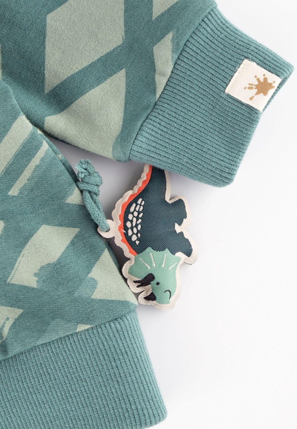 Детский свитшот с шипами динозавра по бокам, коллекция sigikid baby Dino World осень/зима 2024/25. Из хлопка контролируемого органического выращивания. Качество: толстовка, ок. 280 г/м², с мягким начесом на внутренней стороне. Мягкая манжета на шее контрастного цвета. Швы закрыты. в горловине Цвет: зеленый хаки, графический принт Две кнопки на плече Ребристые манжеты на рукавах и поясе Три оранжево-красных шипа динозавра, торчащие сбоку Большой вышитый шрифт сигикид, нашивка-капля на рукаве Съемная коллекционная бирка Дино Трицератопс Все ткани наших детских толстовок сертифицированы по знаку Textiles Confidence OEKO-TEX Standard 100.