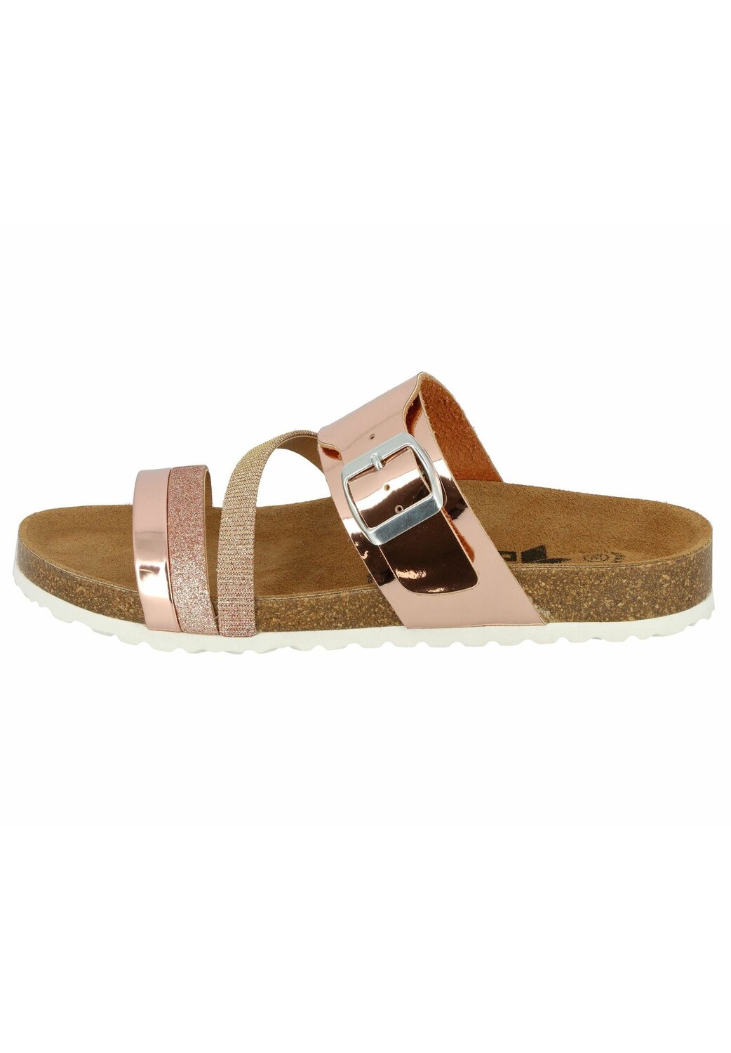 Описание товара: Мюли из синтетического материала, регулируемая пряжка, кожаная стелька, амортизирующая подошва из ЭВА, стелька из пробки/резины.